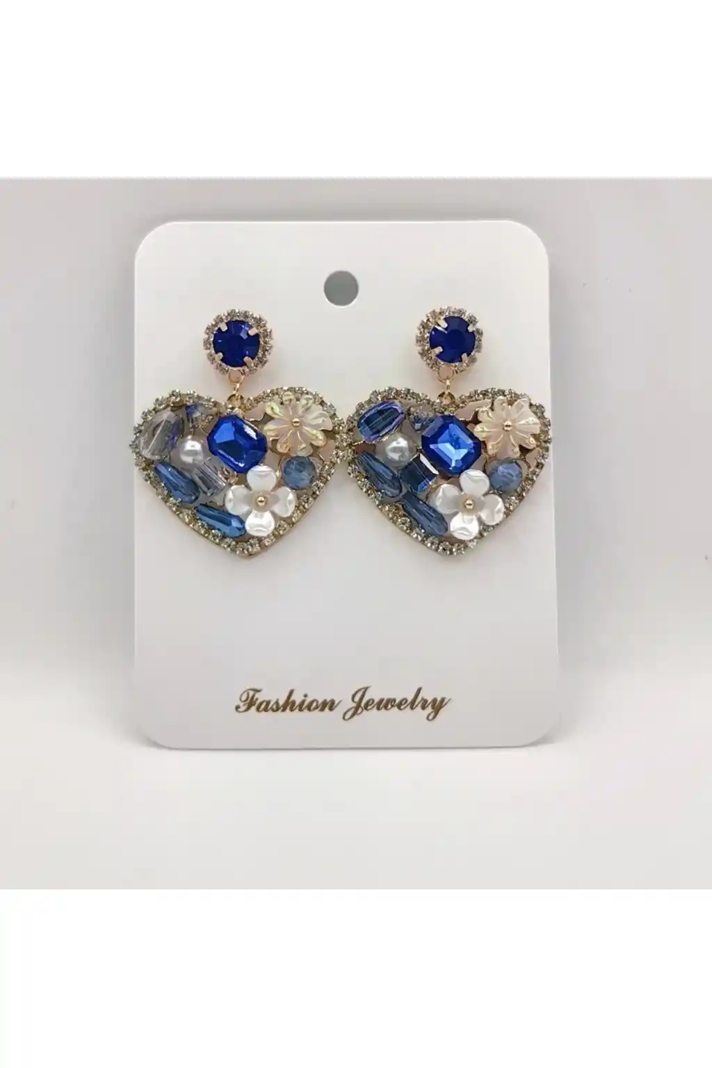 Mavi Renk Sallantılı Lotus Küpe (Çift)