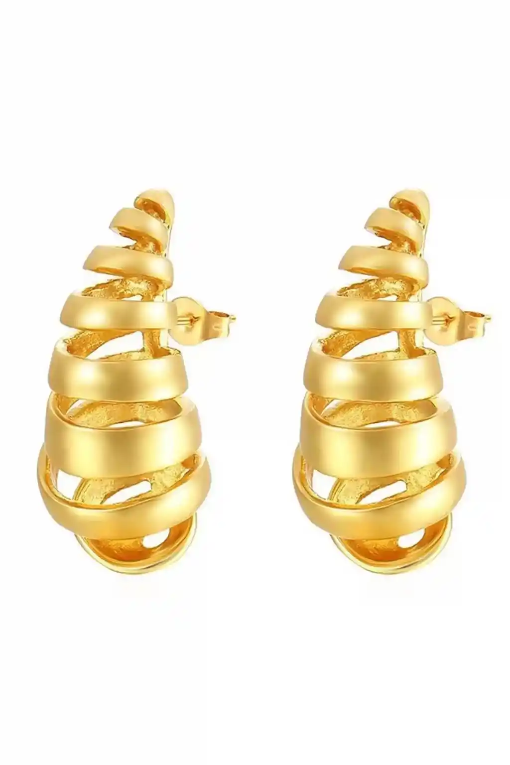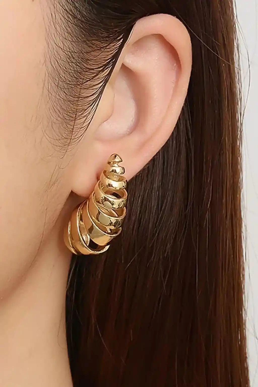 - Altın rengi çelik malzeme ile üretilmiş, şıklığınızı tamamlayacak zarif bir aksesuar.; - Bottega serisi tasarımının özgün çizgilerini yansıtan bu küpeler, günlük kullanım için idealdir.; - Kadın ve kız kullanıcılar için özel olarak tasarlanmış olup, her türlü kıyafetle uyum sağlar.; - Menşe ülke Türkiye olan bu ürünler, yerli üretim kalitesini ve dayanıklılığını garanti eder.