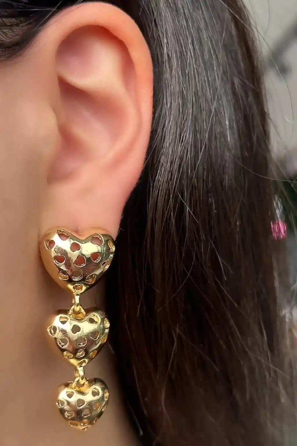 - Zarif tasarımıyla dikkat çeken altın renk çelik küpe, her türlü kıyafetle uyum sağlar.; - Kadınların şıklığını tamamlayacak bu küpeler, günlük kullanım için idealdir.; - Yüksek kaliteli çelik malzemeden üretilmiş olup, uzun süreli kullanıma uygundur.; - Türkiye'de üretilmiş olmasıyla yerel üretim avantajından faydalanabilirsiniz.