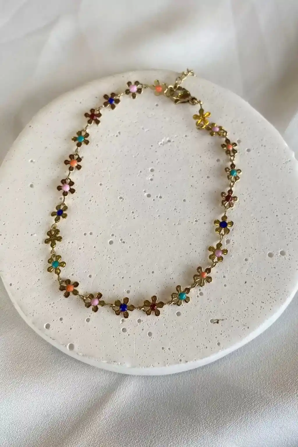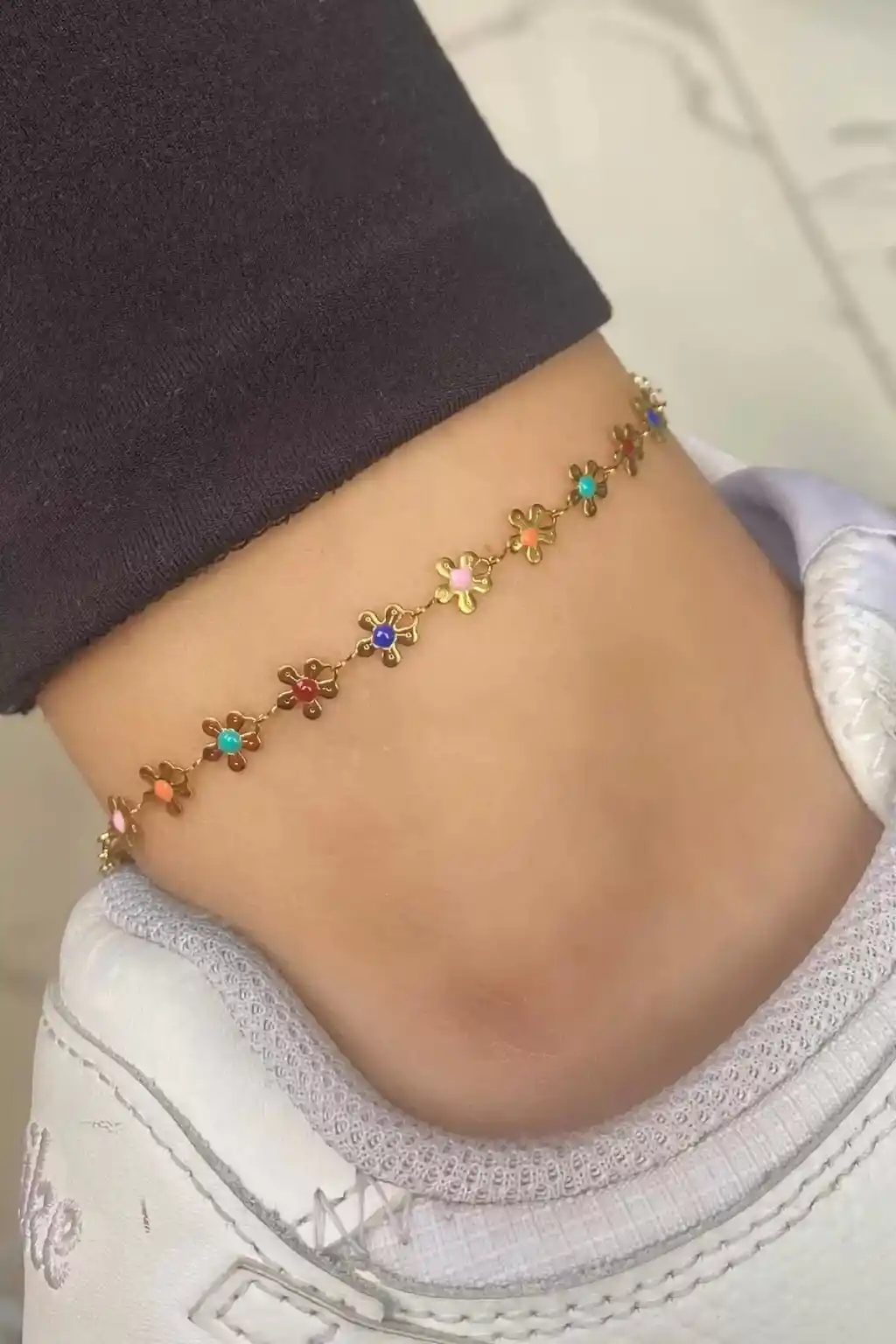 Altın renkli çiçek figürleriyle süslenmiş, gençlerin tarzını yansıtan şık bir aksesuar olan bu bijuteri halhal, çelik malzemesiyle dayanıklı ve uzun ömürlü kullanım sunar.; Gençlerin enerjisini ve stil anlayışını yansıtan bu halhal, günlük kullanımda rahatlık sağlarken, altın rengiyle göz alıcı bir parlaklık kazandırır.; Çelik malzemesiyle paslanma veya kararmaya karşı dirençli olan bu bijuteri halhal, her türlü kıyafetle uyum sağlayarak stilinize modern bir dokunuş ekler.; Çiçek figürleri ile süslenmiş tasarımı sayesinde feminen ve şık bir görünüm sunan bu halhal, gençlerin kişisel tarzlarını tamamlamak için idealdir.; Gençlerin günlük yaşamda rahatlıkla tercih edebileceği bu bijuteri halhal, altın rengi detaylarıyla dikkat çekici bir aksesuar olmanın yanı sıra uzun süreli kullanım vaat eder.;