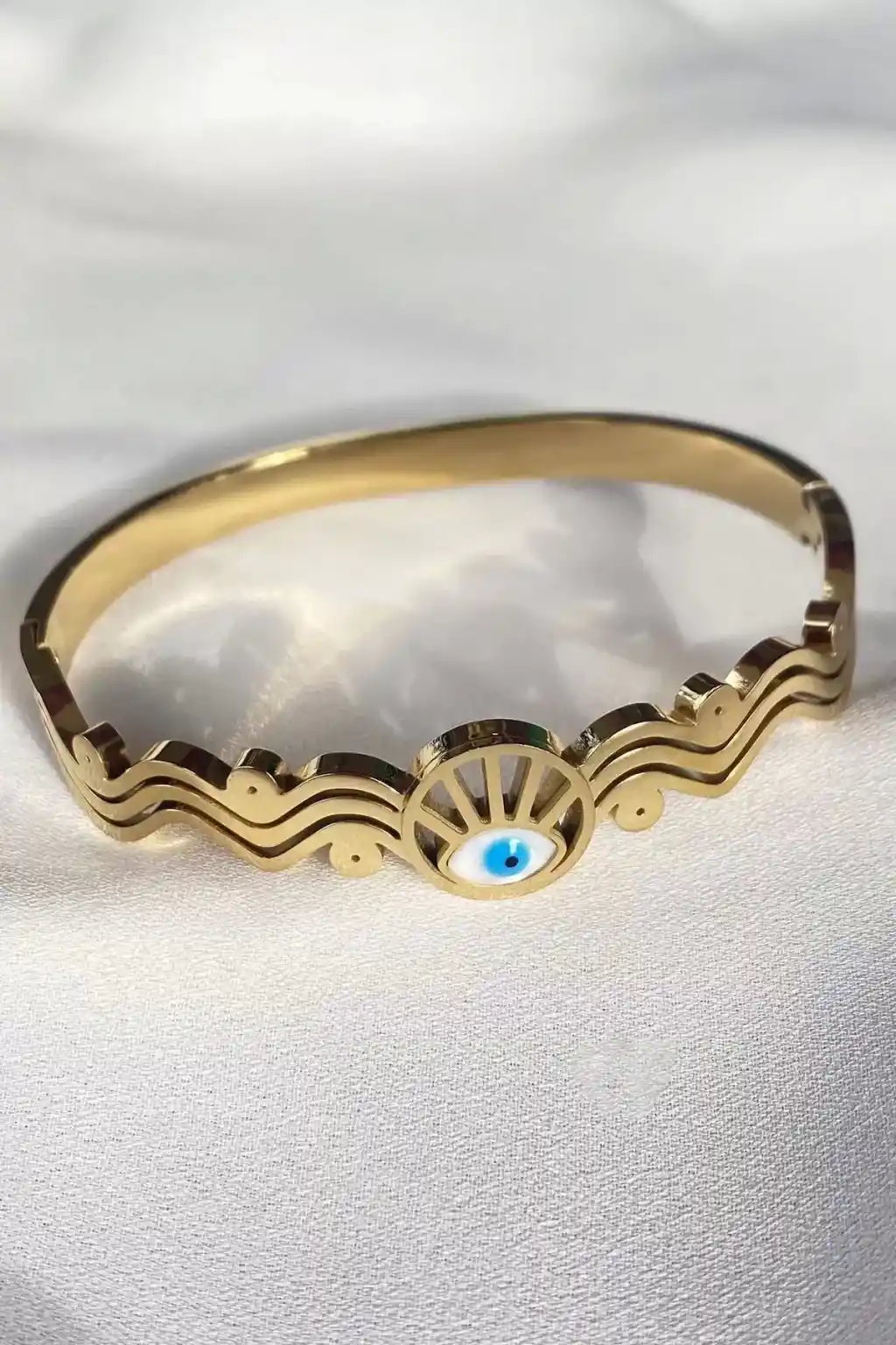 Altın Renk Göz Detaylı Çelik Kelepçe Bileklik