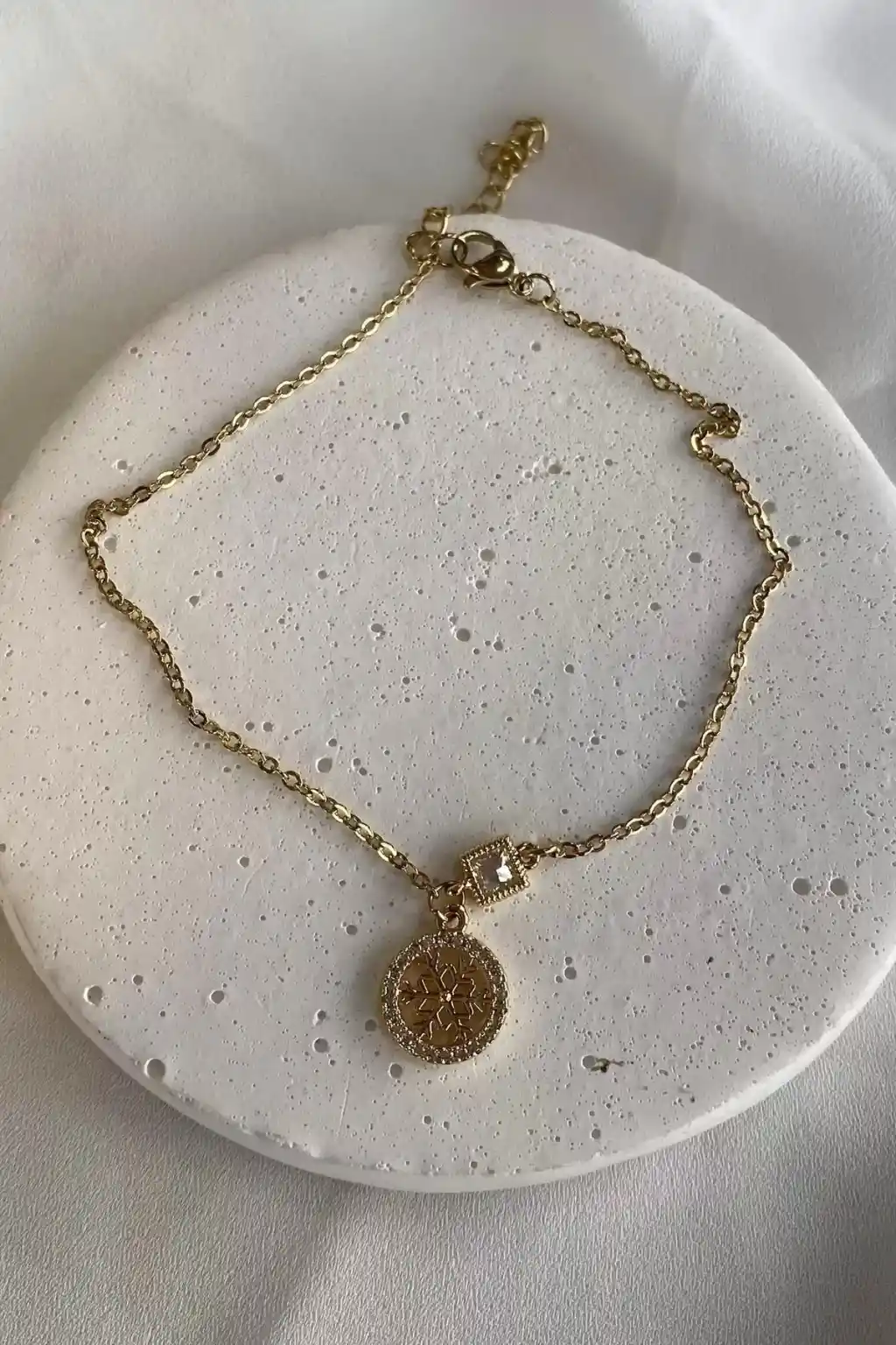 Gençlerin enerjisini ve stilini yansıtan, altın renk kar tanesi figürlü çelik halhal, günlük kombinlerinize şıklık katmak için ideal bir aksesuardır; Dayanıklı çelik materyali sayesinde uzun süreli kullanım sunar ve günlük aktivitelerinizde rahatlıkla tercih edebilirsiniz; Altın rengi ile zarif bir görünüm sağlayarak, her türlü kıyafetle uyum içinde olmanızı sağlar;