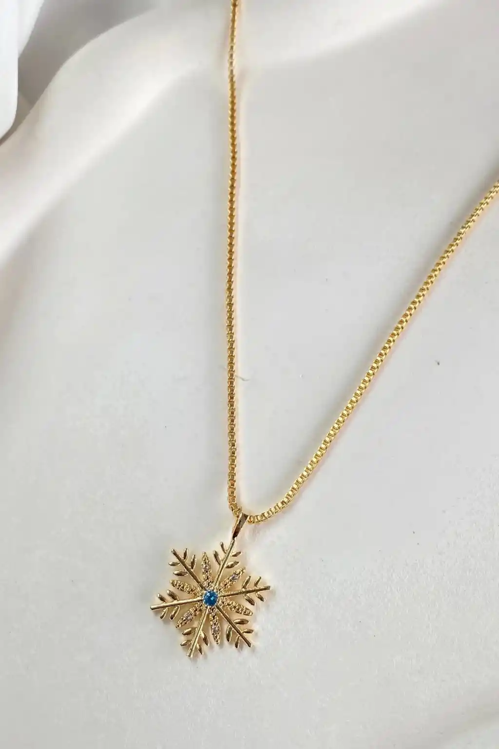 Altın Renk Kar Tanesi Figürlü Çelik Kolye, her kadının gardırobunda şık ve zarif bir dokunuş yaratmak için tasarlandı.