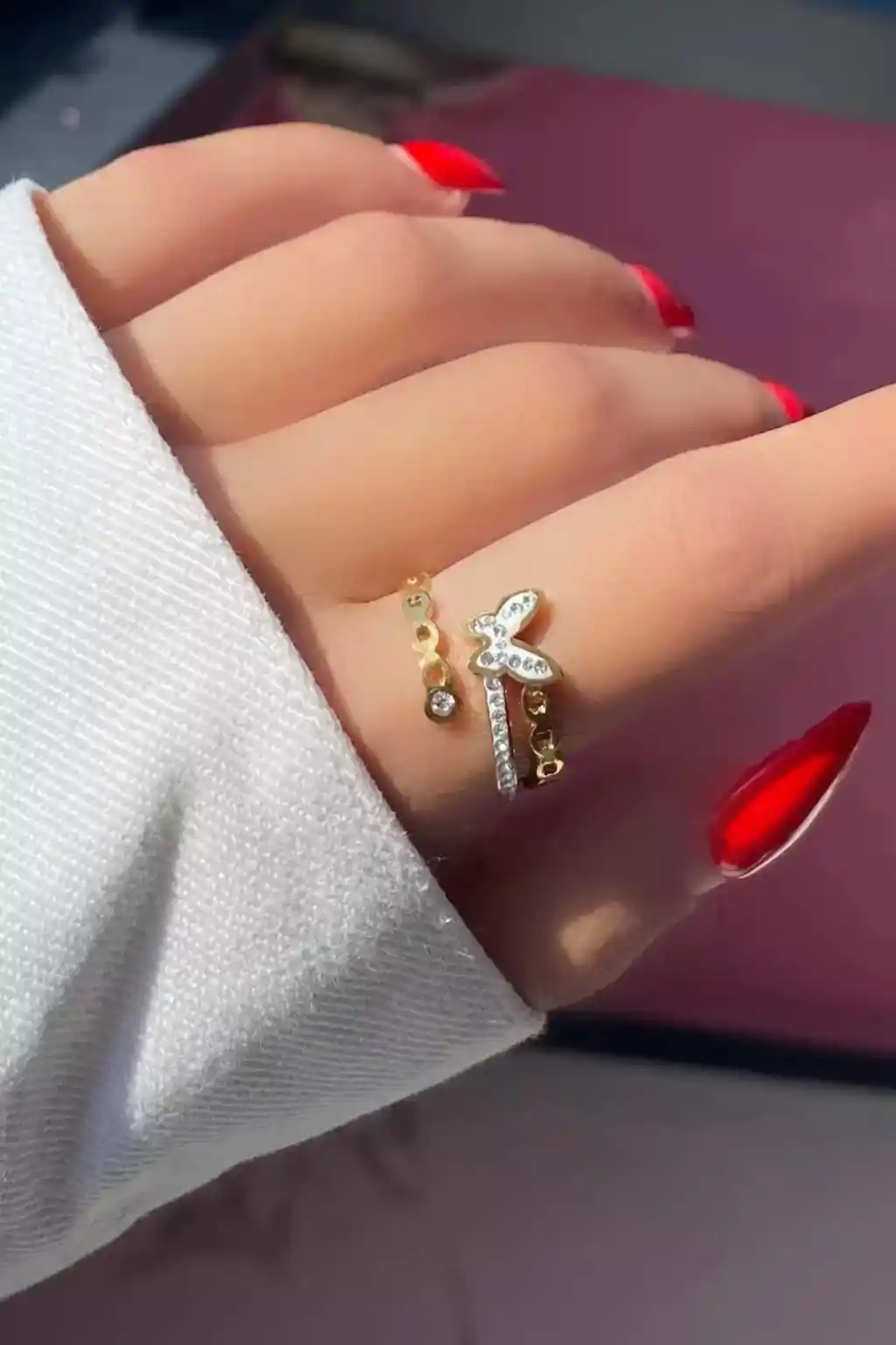 Bu eşsiz kelebek figürlü yüzüğü, hem kendiniz hem de sevdikleriniz için özel bir hediye olarak tercih edebilirsiniz.