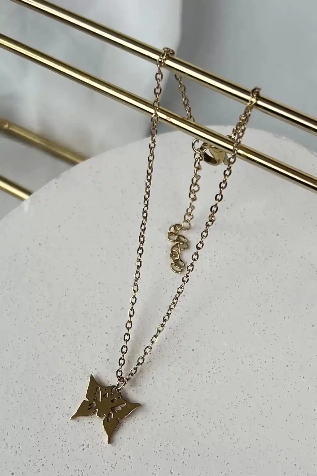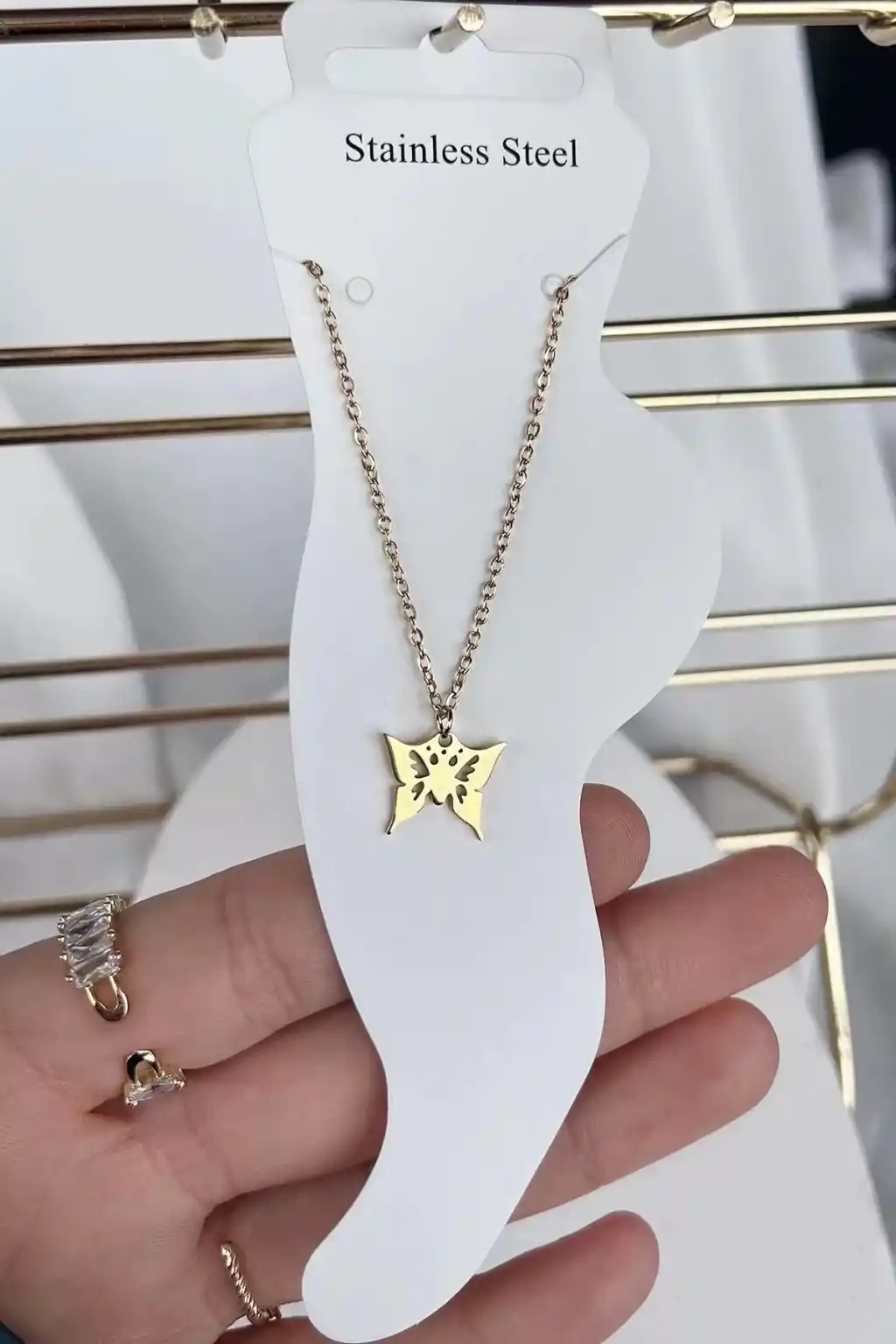 Altın Renk Kelebek Figürlü Çelik Halhal, şık ve zarif bir görünüm sunan kadın aksesuarları arasında öne çıkıyor.