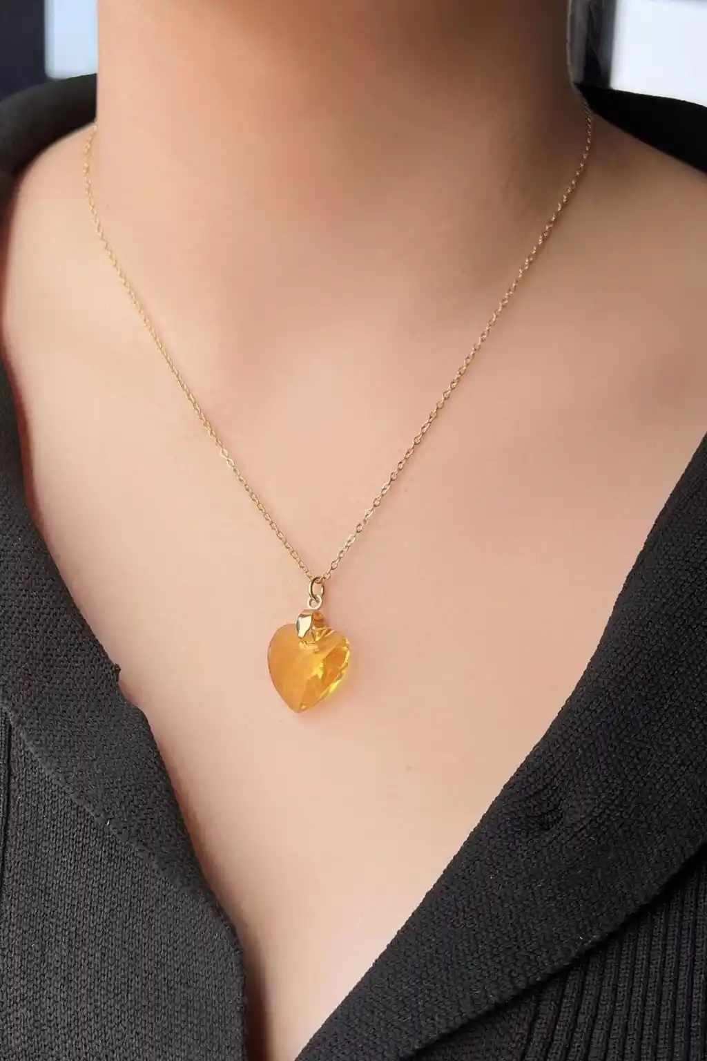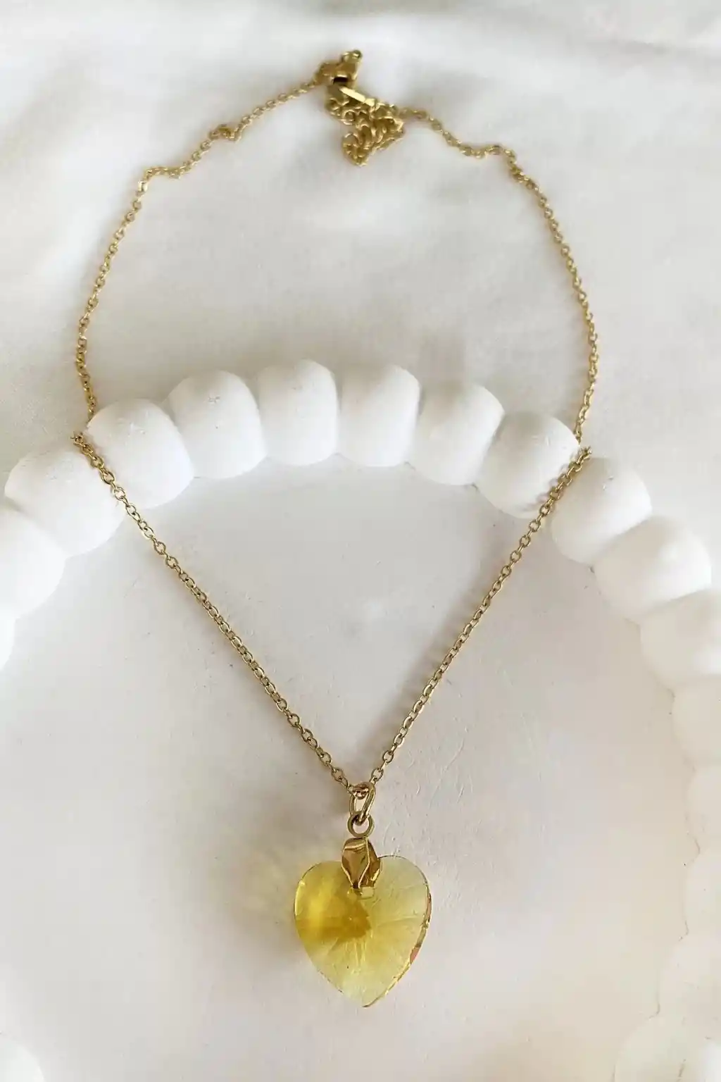 Altın renginde tasarlanmış bu şık kolye, zarif görünümü ile her tarza uyum sağlar.