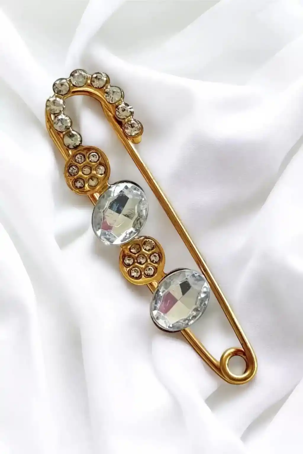 - Altın rengi detaylarıyla göz alıcı bir görünüm sunan eşarp iğnesi, şıklığınızı tamamlayacak zarif bir aksesuar.; - Kadın ve kızlar için özel olarak tasarlanmış bu broş, her türlü kıyafetle uyum sağlayarak stilinizi öne çıkarır.; - Kaliteli malzemesi sayesinde uzun süreli kullanım için idealdir ve kolayca kırılmaz veya paslanmaz.; - Eşarp iğnesinin altın rengi detayları, klasik ve modern çizgileri harmanlayarak her ortamda dikkat çekmenizi sağlar.