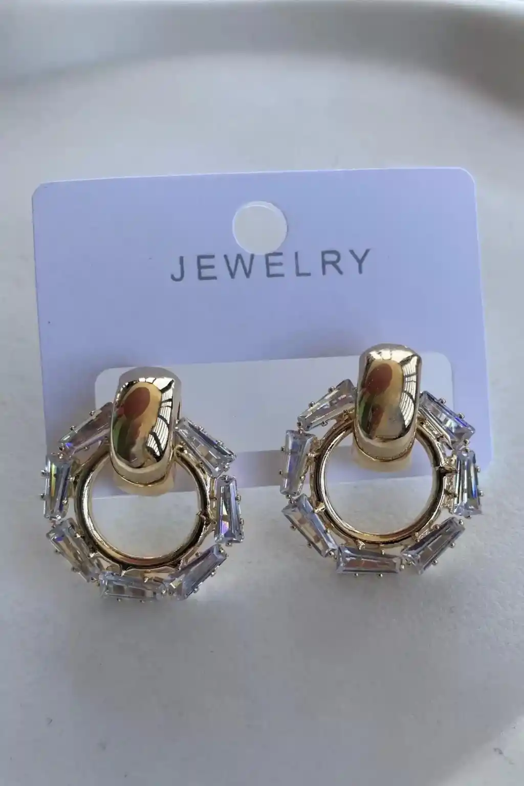 Altın Renk Taş Detaylı Küpe (Çift), kadınların şıklığını tamamlayacak zarif ve göz alıcı bir aksesuardır. Her bir detayı özenle tasarlanmış olan bu küpeler, stilinize şıklık ve zarafet katacak.