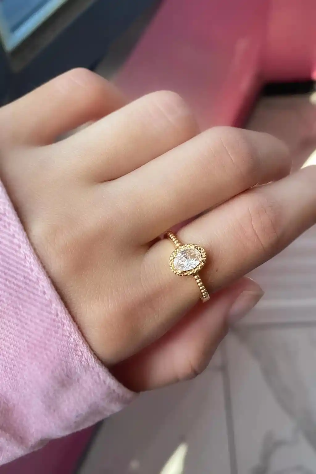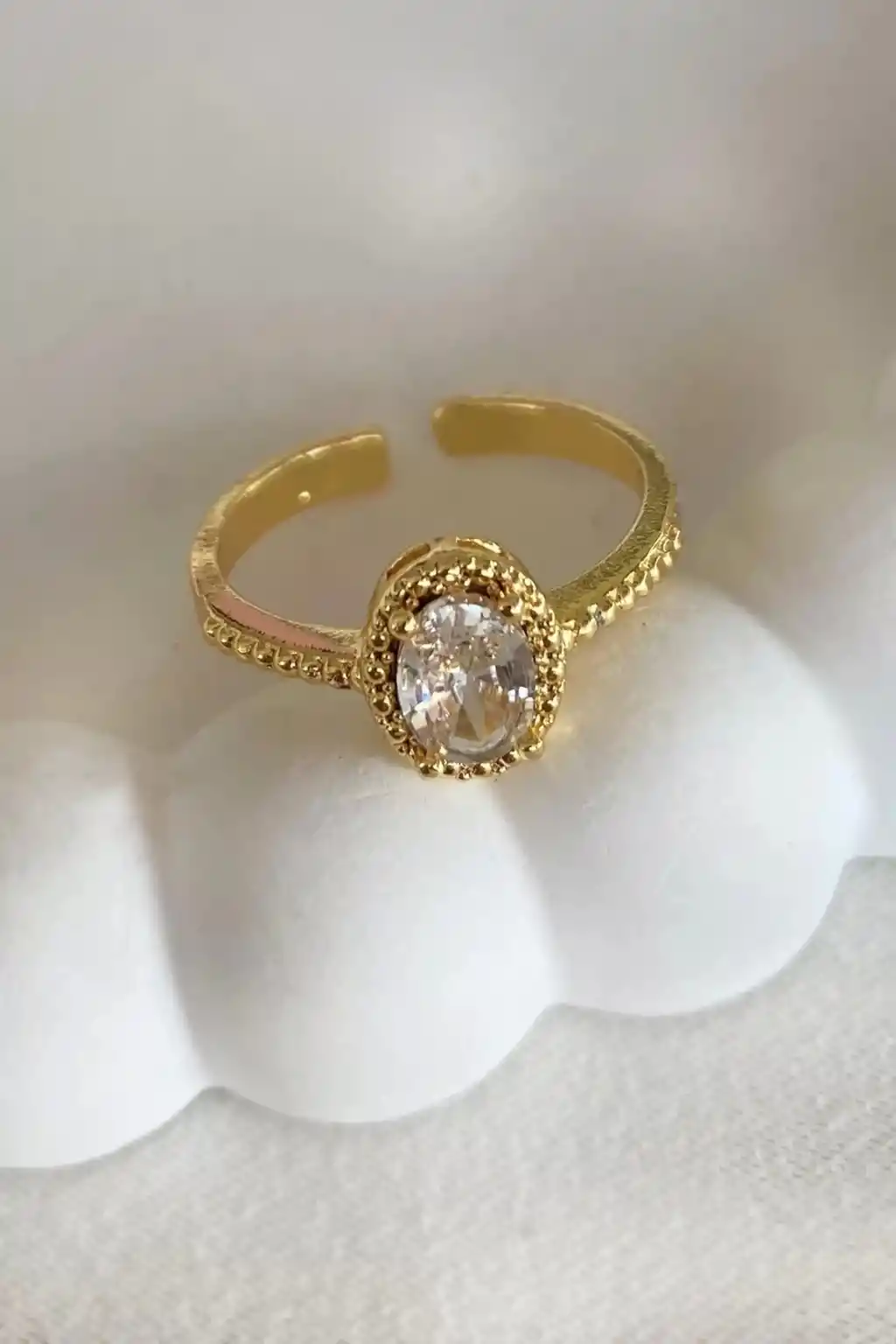 Altın Renk Taşlı Ayarlanabilir Yüzük, stilinize zarif bir dokunuş katacak mükemmel bir aksesuardır.