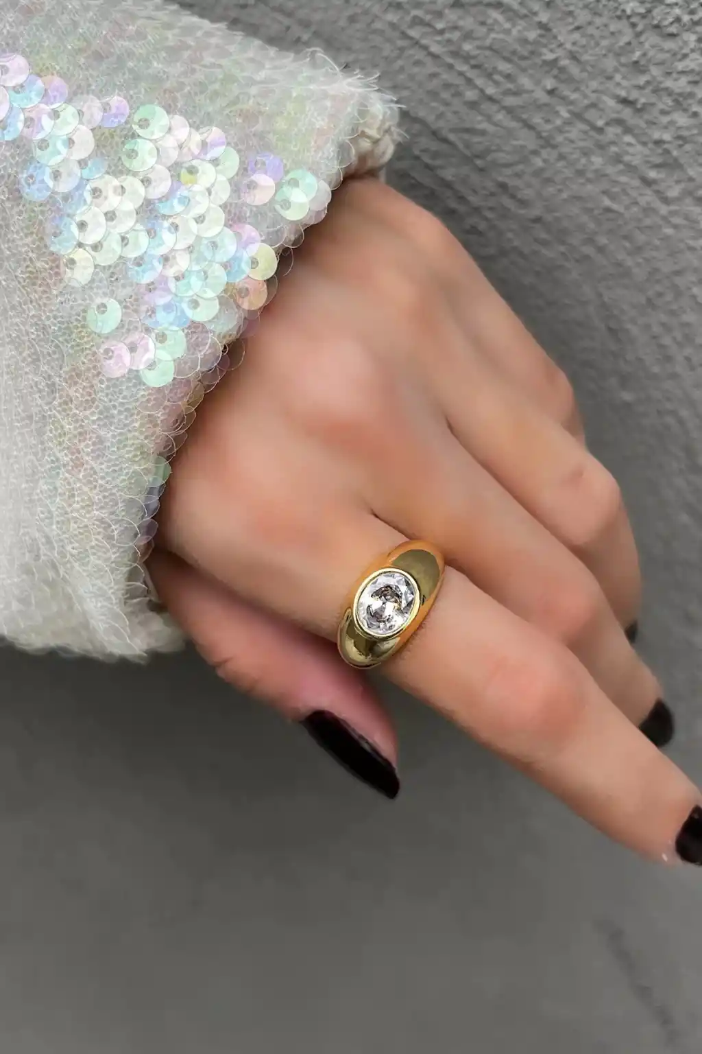 Altın Renk Taşlı Ayarlanabilir Yüzük Aksesuar
