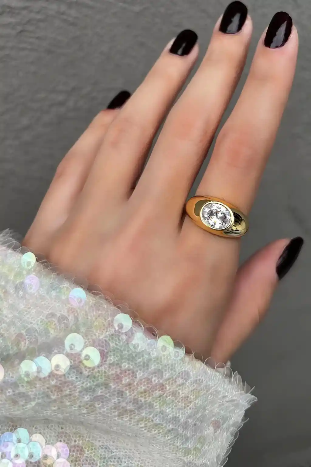 Altın Renk Taşlı Ayarlanabilir Tırnak Yüzük