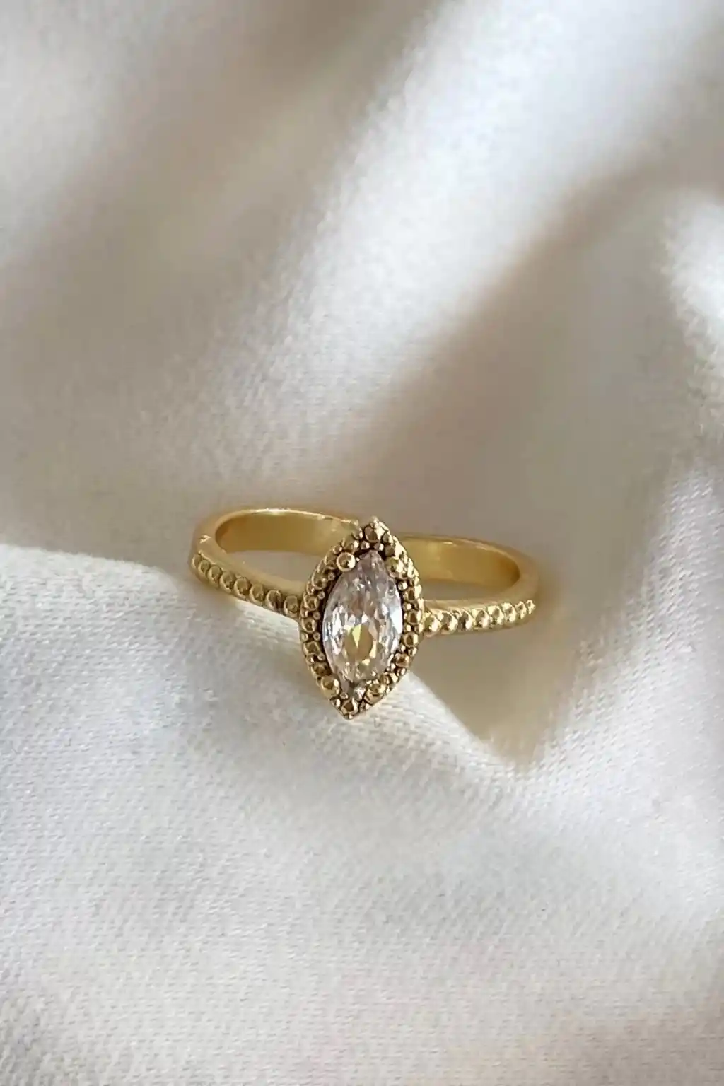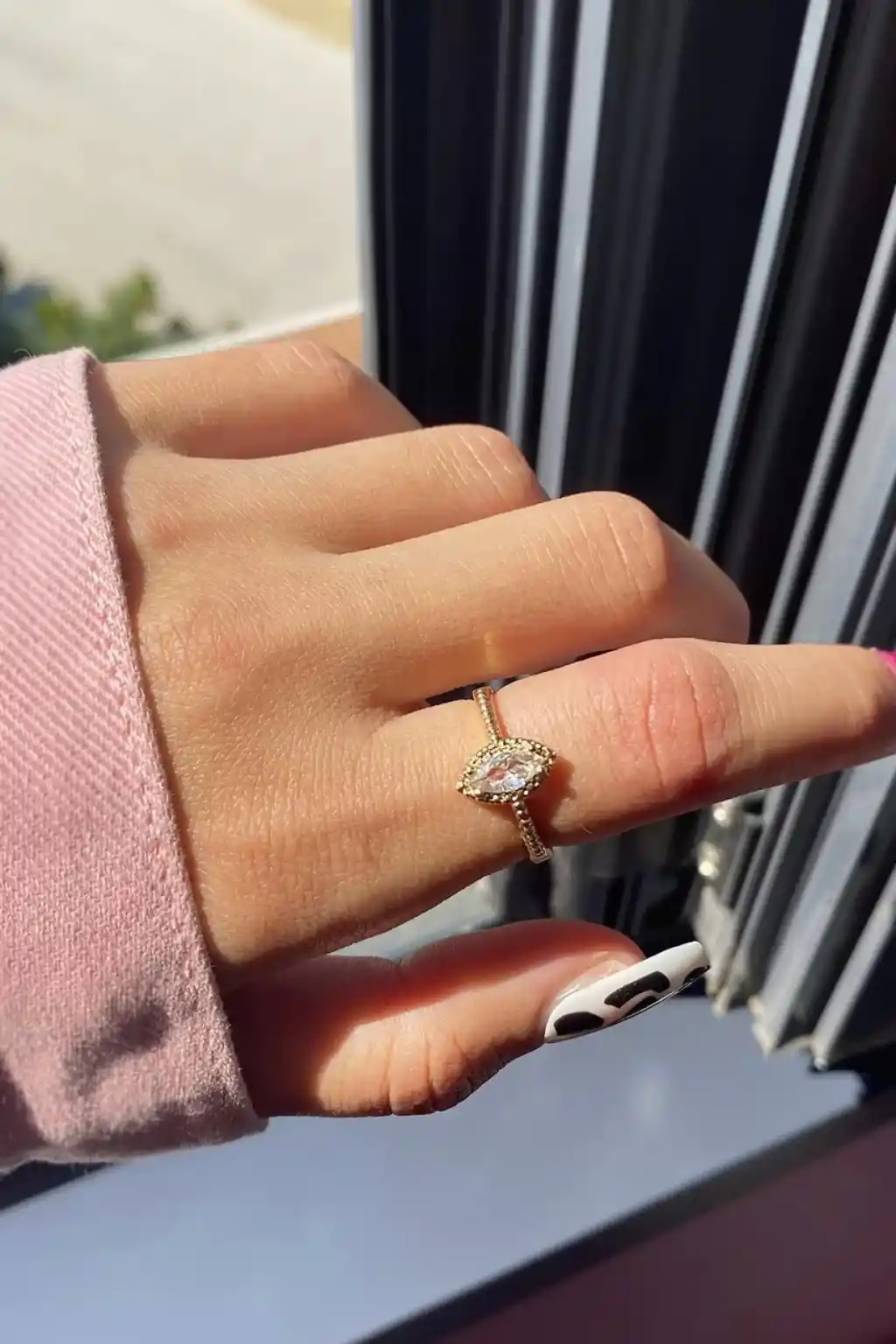 Altın Renk Taşlı Ayarlanabilir Yüzük, şıklığı ve zarafeti bir arada sunar. Hem günlük kullanıma hem de özel günlerde tercih edebileceğiniz bu yüzük, stilinizi tamamlayacak şık bir detaydır.