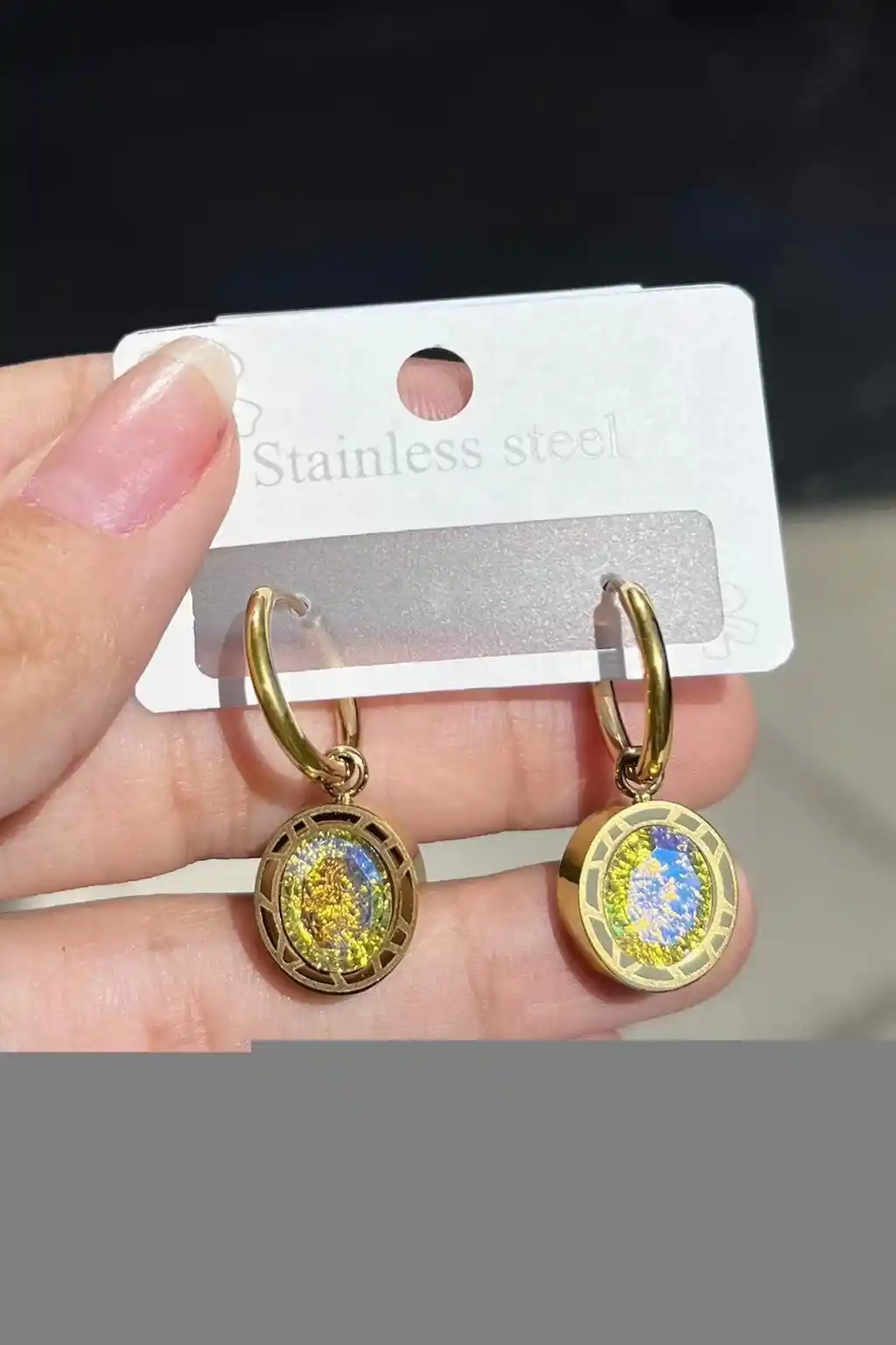 Bu altın renk taşlı çelik küpeler, her kadının takı koleksiyonunda olması gereken şık ve zarif bir parçadır. Hem günlük kullanım hem de özel davetler için uygun olan bu küpeler, şıklığınıza şıklık katacak.