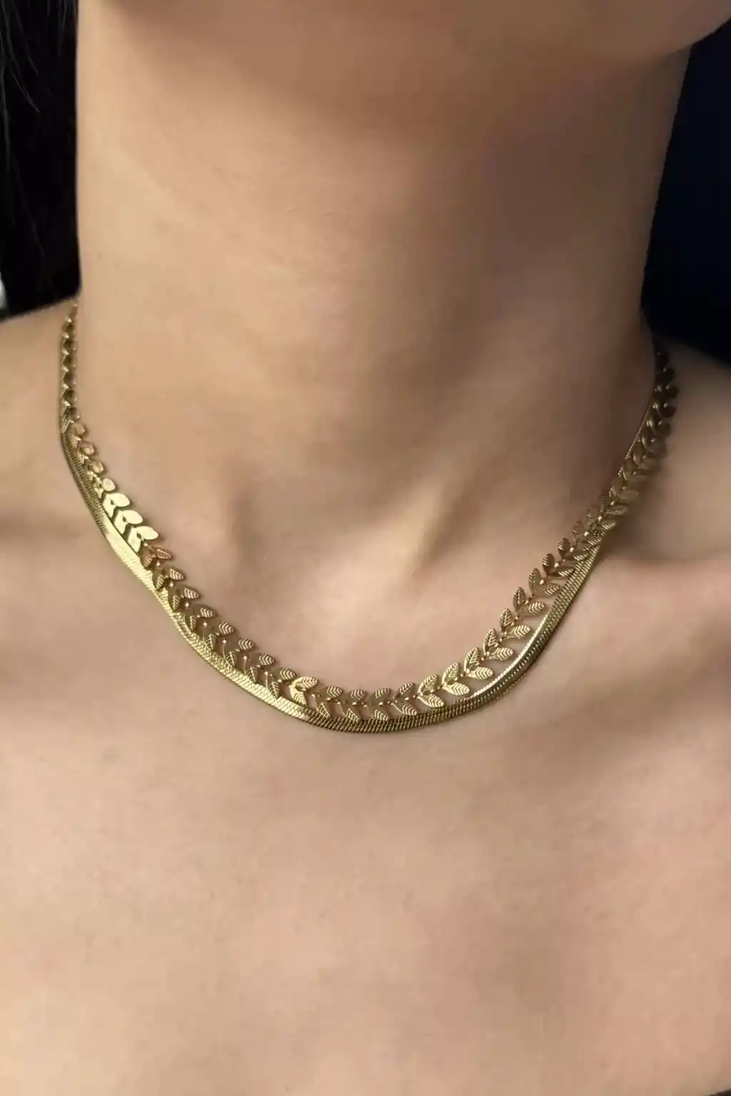 Altın Renk Yaprak Figürlü Çelik Kolye