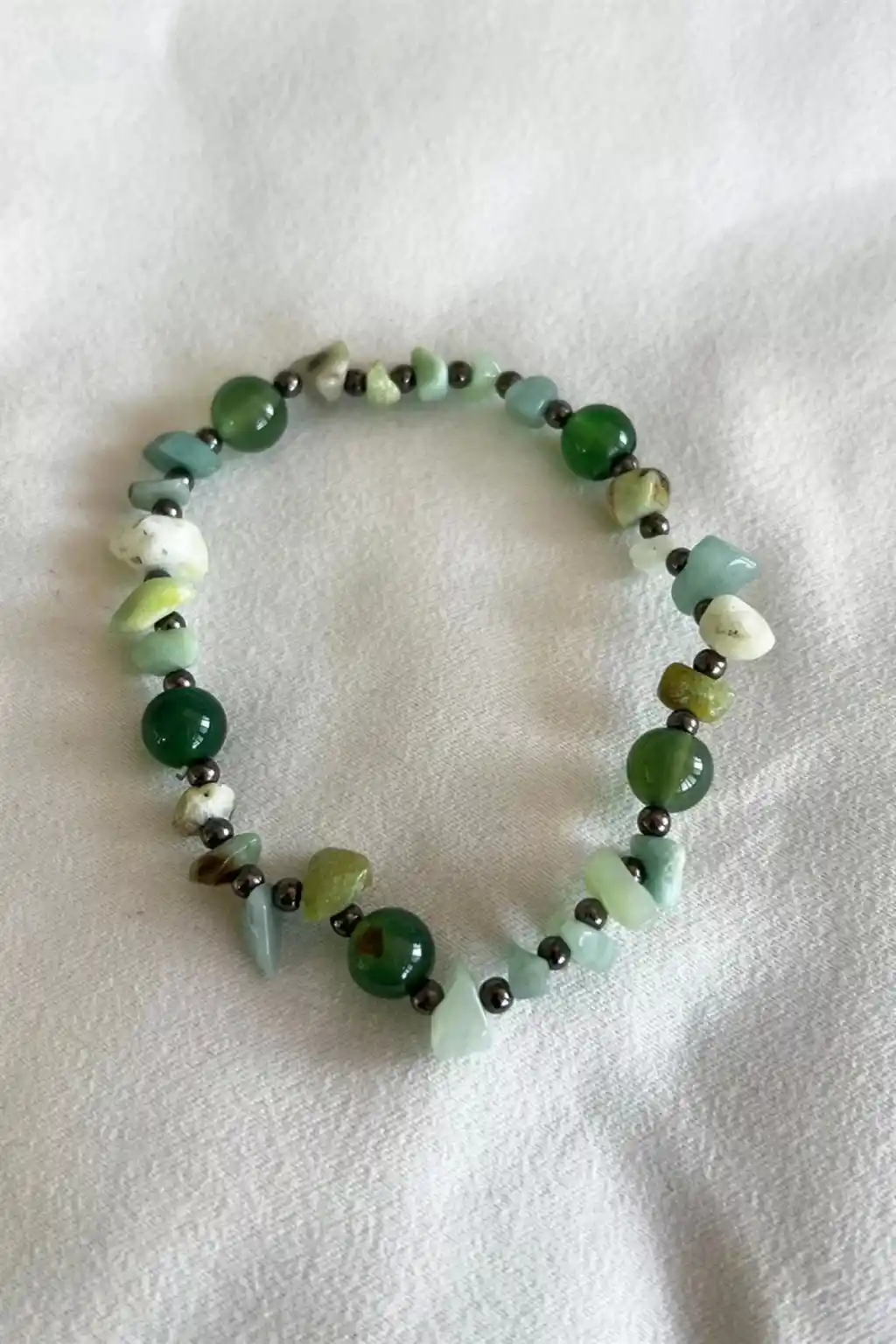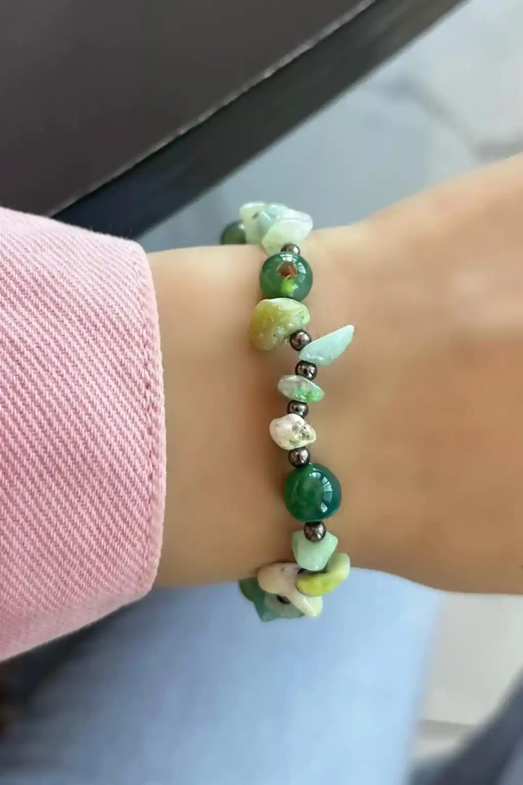 Doğal taş kullanımı sayesinde her bileklik benzersiz ve otantik bir görünüm sunar; Amozonit boncuklar, bilekliğe zarif bir parlaklık ve estetik bir dokunuş katar; Empati ve düşünce gücünü simgeleyen tasarımıyla, kişisel gelişim ve farkındalık yolculuğunuzda size eşlik eder; Doğal taş materyali ile hem şıklığı hem de sağlığı bir arada sunar; cildinizle dost, alerji yapmayan bir yapıya sahiptir;