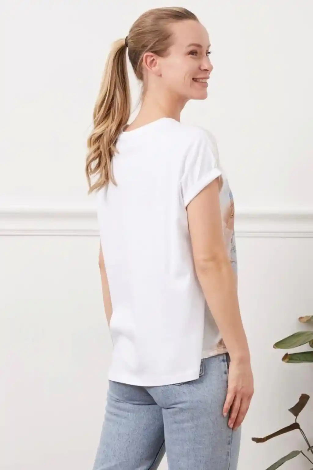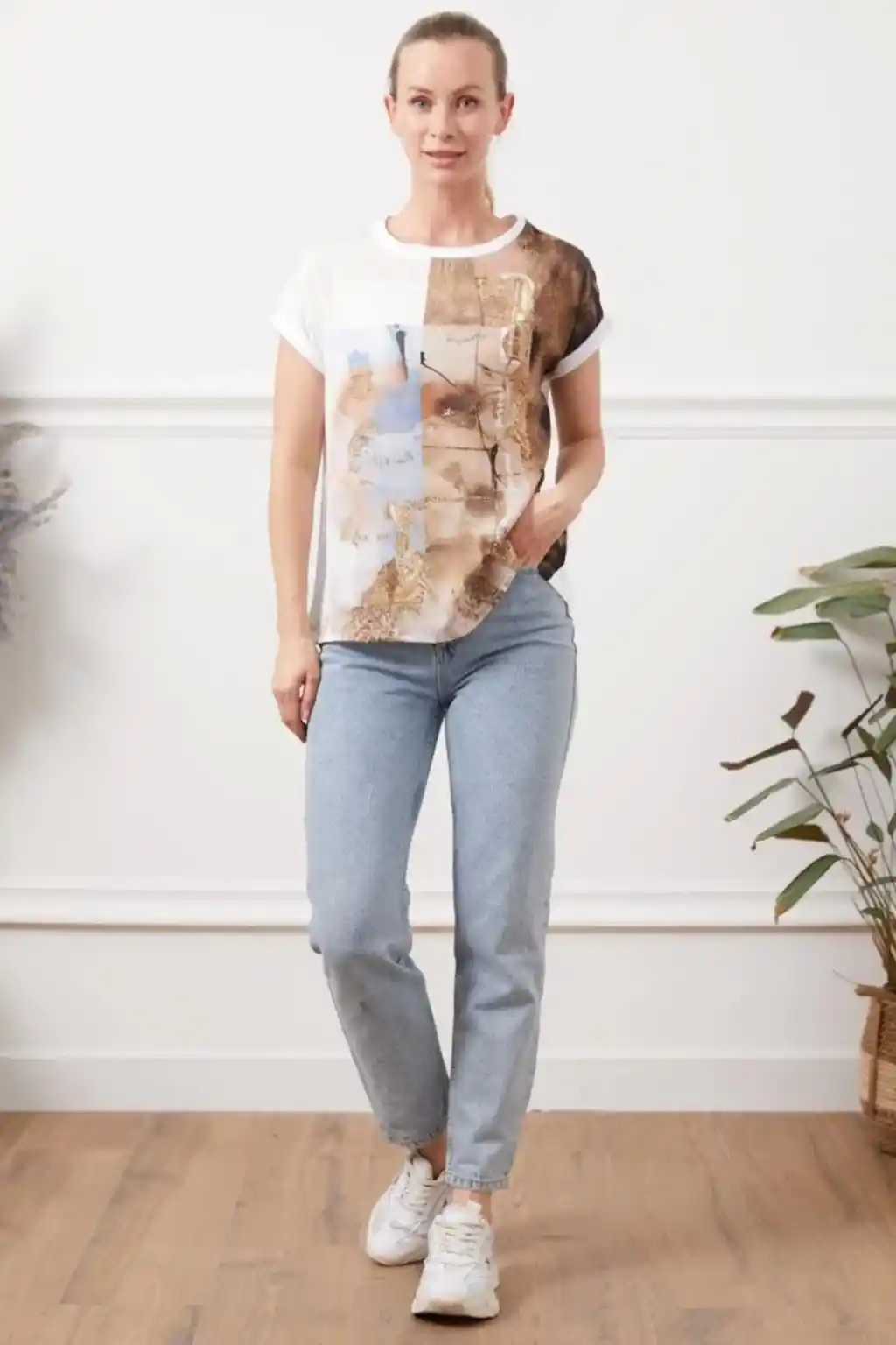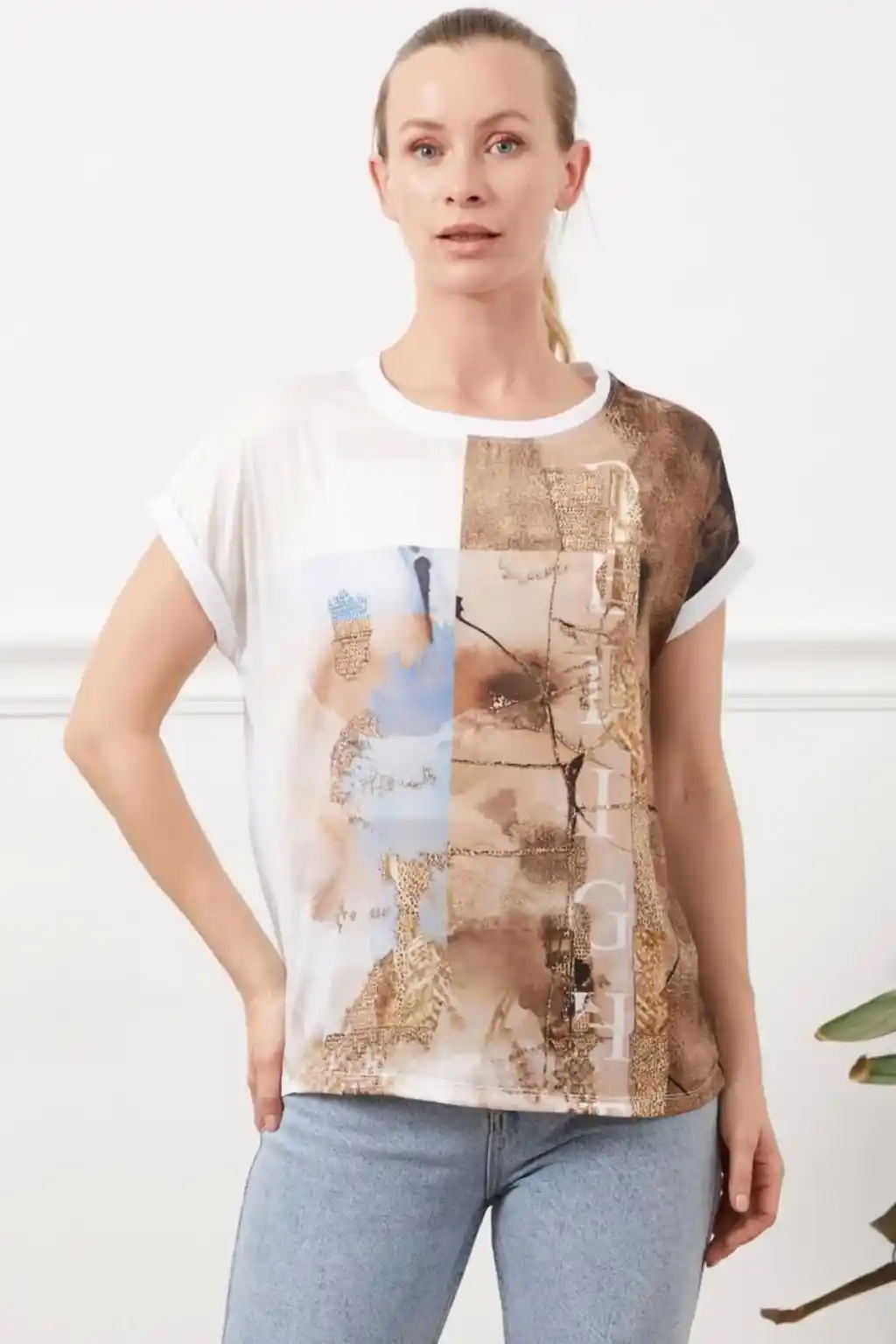 Günlük kombinlerinizi bu baskılı T-shirt ile canlandırın ve konforun tadını çıkarın. Kombin önerileri için çeşitli alt ve ayakkabılarla mükemmel uyumu yakalayabilirsiniz.