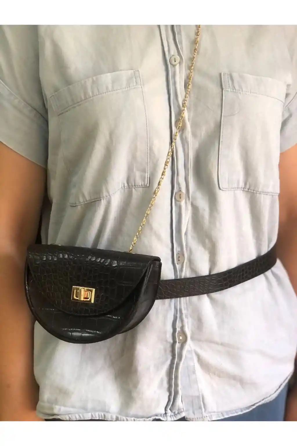 - Günlük kullanım için ideal, casual tarzıyla her ortama uyum sağlayan siyah bel çantası.; - Sade ve şık tasarımıyla dikkat çeken düz desenli siyah renk seçeneği.; - Kadın ve kız kullanıcılar için özel olarak tasarlanmış, rahat taşıma imkanı sunar.; - Menşei Türkiye olan bu ürün, yerel üretim kalitesini yansıtırken aynı zamanda modern çizgilerle buluşuyor.
