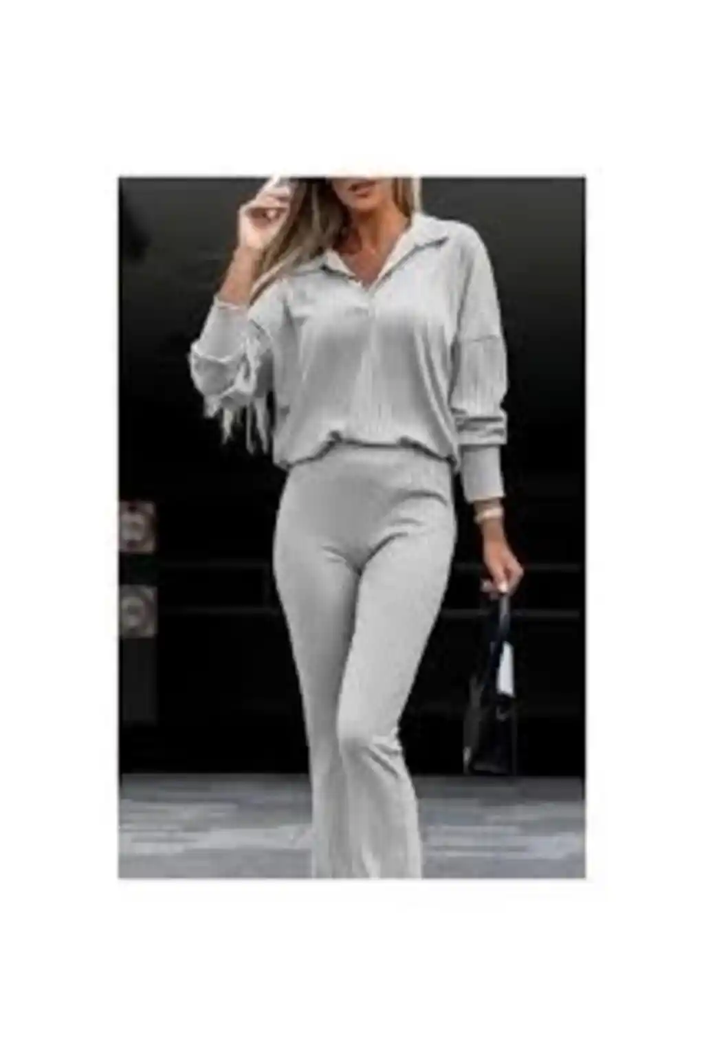 Bella Notte Kadın Düşük Omuz Yaka Detay Tişört ve Ispanyol Paça Pantolon Takımı, günlük şıklık arayan kadınların tercihi oluyor.