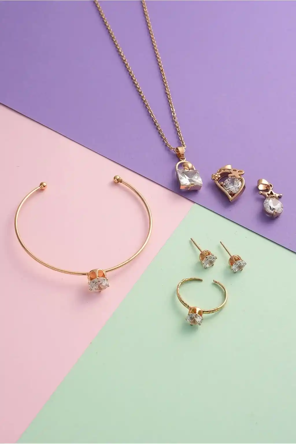 Beoje Kadın Kolye Küpe Set Taşlı (BİLEZİK, KOLYE, KÜPELER, KOLYE UCU)