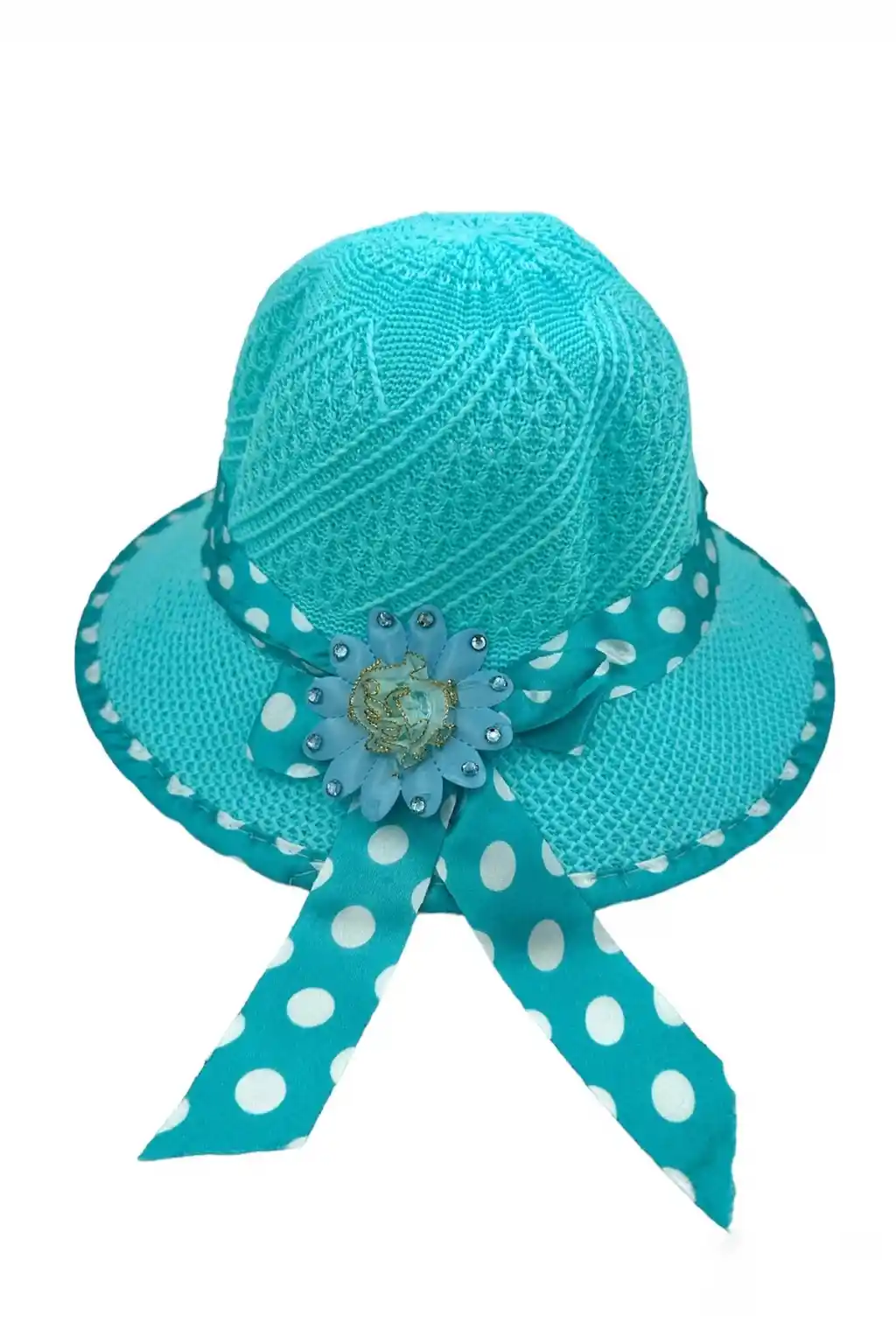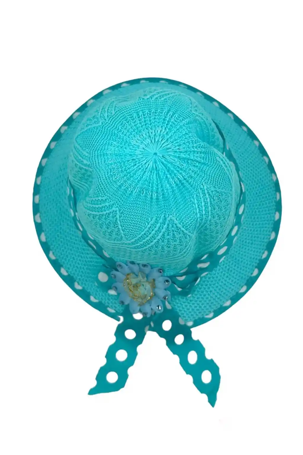 Beoje Kıds Kız Çocuk Şapkası Hasır Çiçek Figür Benekli Fiyonk Model Turkuaz, çocuklarınızın kombinlerini tamamlayacak ve onlara sevimli bir hava katacak harika bir aksesuardır.