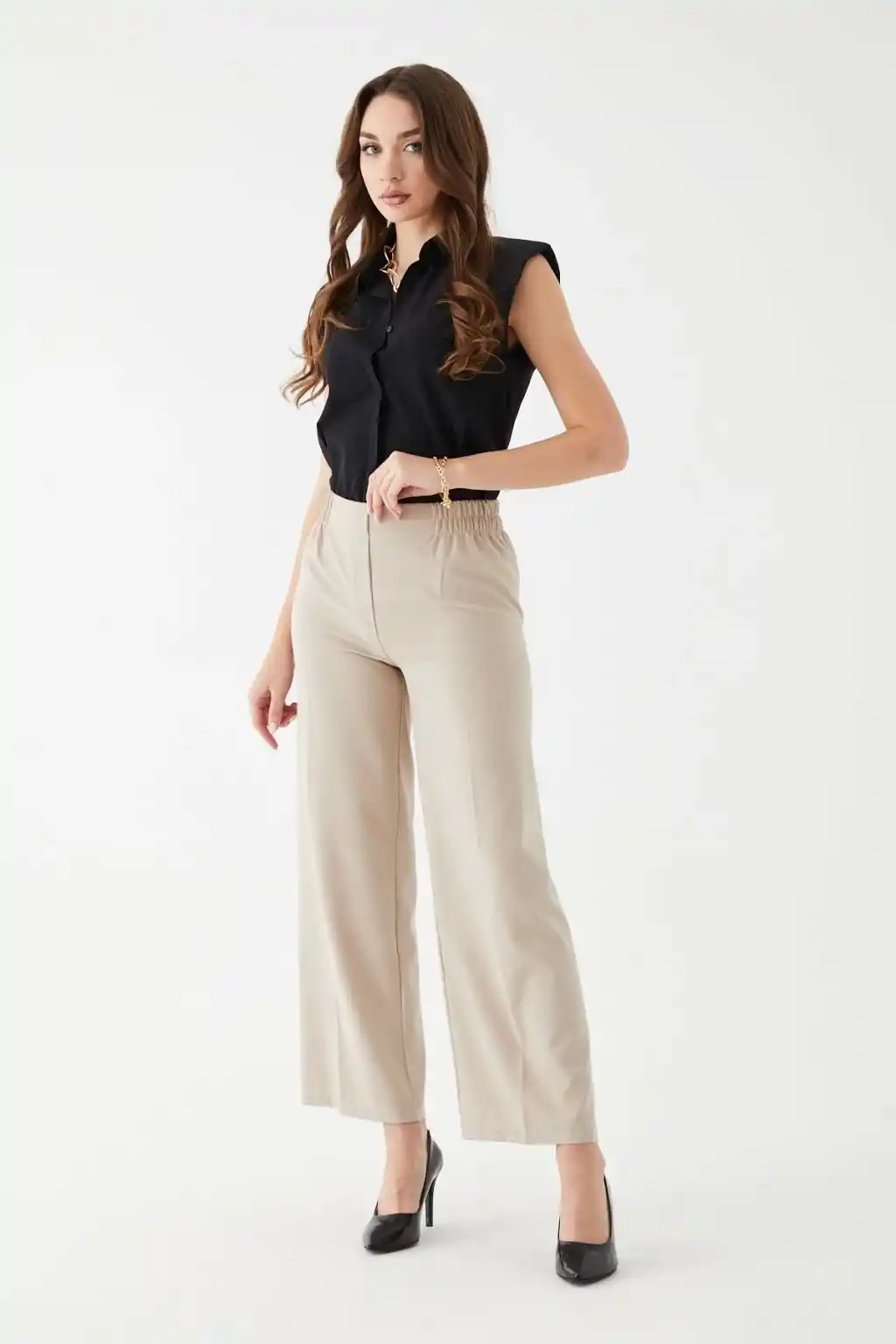 Yüksek Bel Örme Crep Pantolon