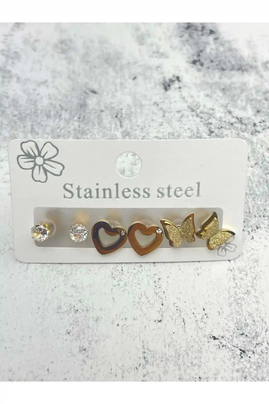 Altın Renk 6'lı Çelik Küpe Set