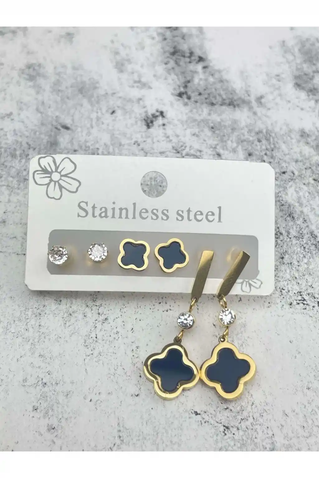 Altın Renk 6'lı Karışık Figürlü Çelik Küpe Set