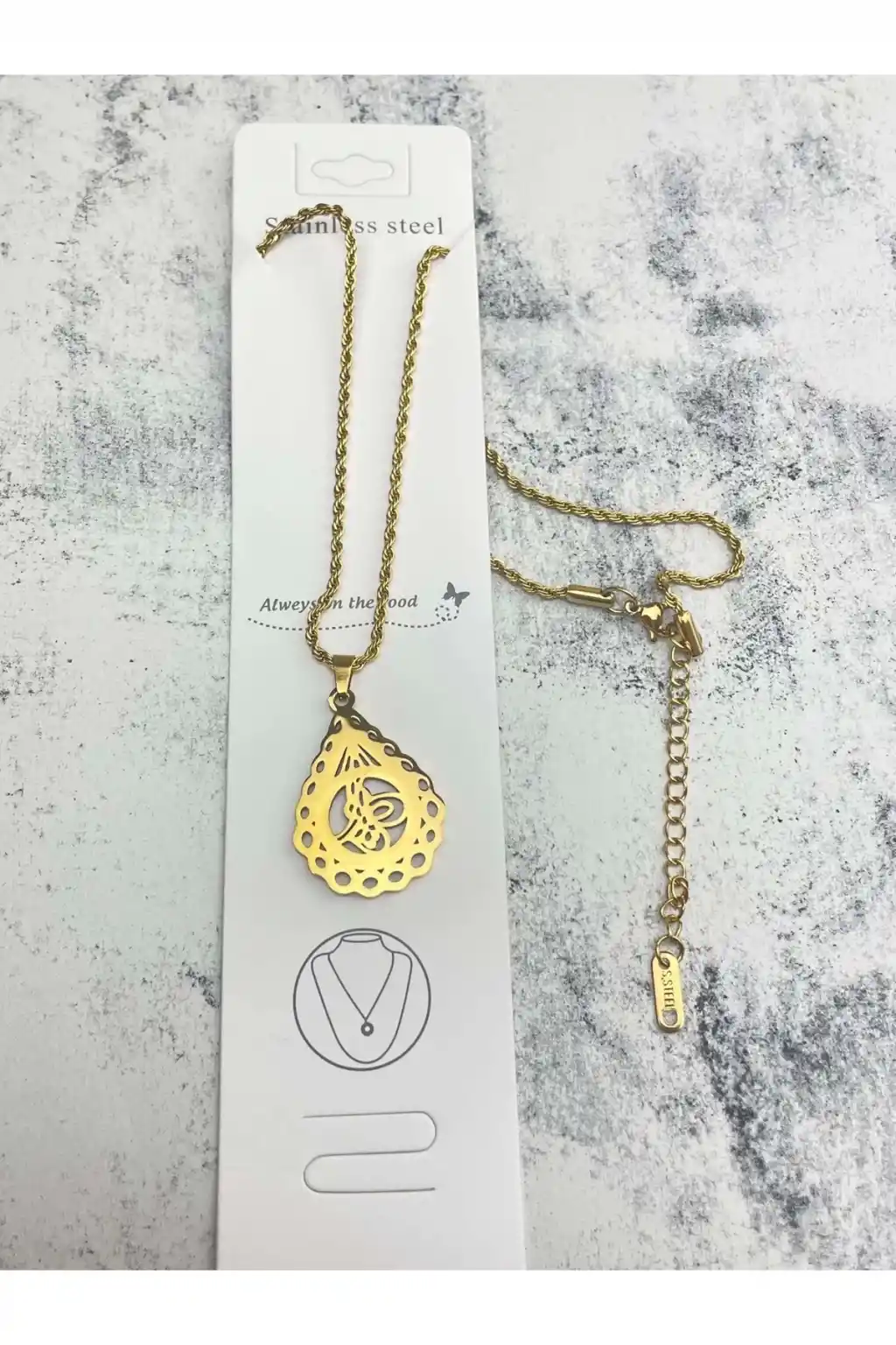 Altın Renk Çiçek Figürlü Çelik Kolye