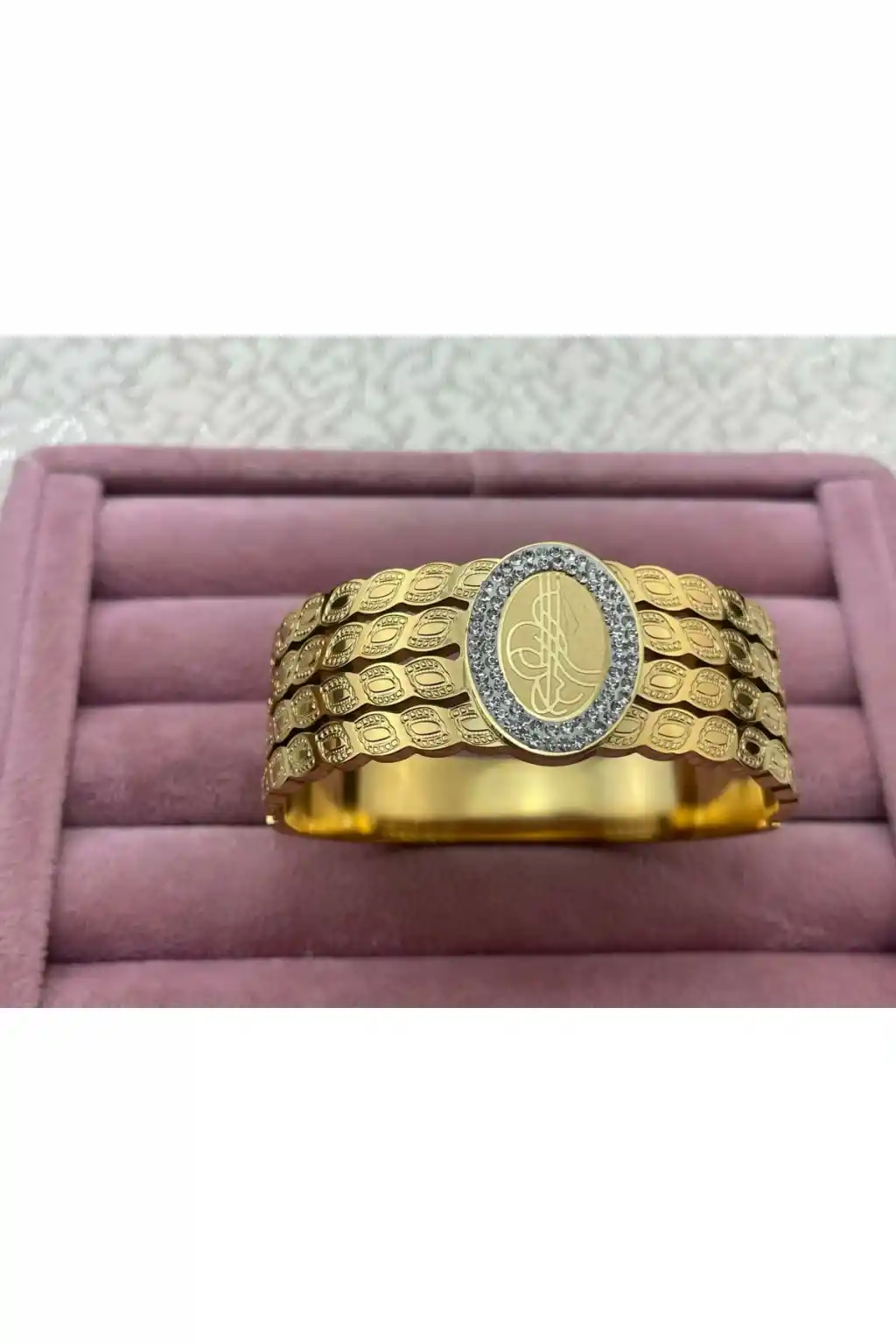 Zarifliği ve dayanıklılığı bir araya getiren çelik altın bileklik modelleri, her zevke uygun tasarımlarıyla dikkat çekiyor.; Stilinizi tamamlamak için mükemmel bir seçim olan bu bileklikler, günlük kullanımda veya özel günlerde şıklığınızı ön plana çıkarmanıza yardımcı olur.; Materyal: Paslanmaz çelik üzerine altın kaplama, aşınmaya ve kararmaya karşı dirençlidir.; ; Tasarım: Minimalizmden göz alıcı detaylara kadar geniş model seçenekleri sunar.; ; Kullanım: Elastik veya kilitli yapıları sayesinde takılması kolay ve konforludur.; ; Renk: Standart altın renk tonları dışında beyaz ve pembe altın gibi alternatifler de bulunur.; ; Uyum: Hem klasik hem modern stil kombinasyonlarına uyum sağlar.; ; Bakım: Özel bakım gerektirmez, uzun süreli parlaklık sunar.; ; Çelik altın bileklikler, zamansız tasarımlarıyla her yaş grubu ve tarzda kadın için ideal bir aksesuardır.; Kendinize ya da sevdiklerinize hediye olarak düşünebilirsiniz.; Estetik ve pratikliğin birleşim noktası olan bu bileklikler, vazgeçilmez parçalar haline gelecektir.