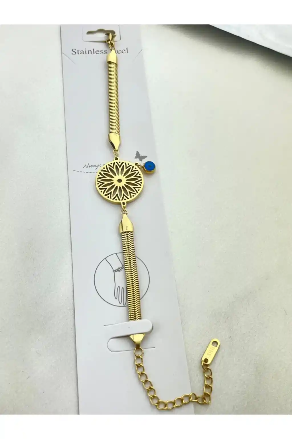 Şık tasarımıyla kombinlerinizi tamamlayan zarif bir aksesuar.; ; Paslanmaz çelik malzemeden üretilmiştir, dayanıklılığı garanti eder.; ; Uzun ömürlü parlaklık sağlayan özel yüzey kaplama.; ; Farklı bilek ölçülerine uyum sağlayacak şekilde ayarlanabilir yapıdadır.; ; Zarif ve modern bir görünüm sunarak, hem gündelik hem de özel günlerde şıklığınızı artırır.; ; Alerjiye neden olmayan nikel içermeyen tasarım.; ; Kullanım sonrası basit bir bezle temizleyerek ilk günkü gibi parlak kalmasını sağlayabilirsiniz.; ; Özel kutu ambalajı sayesinde hediye olarak sunmak için idealdir.