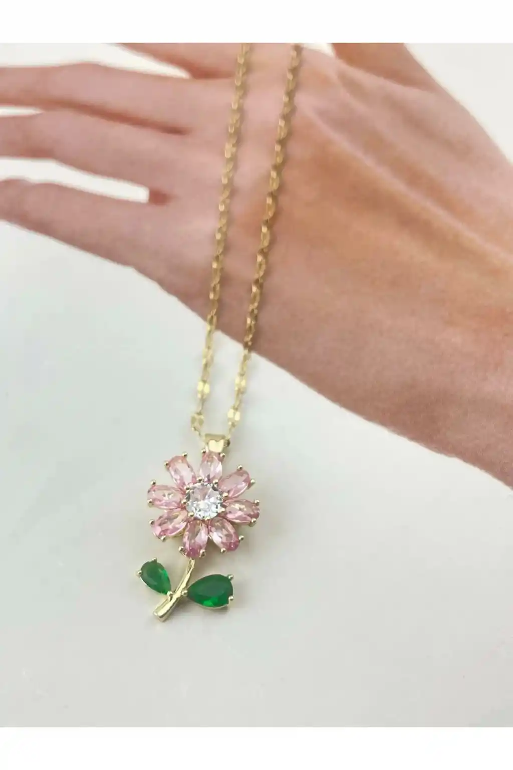 Çelik Gold Renk Dönen Papatya Kolye ile stilinizi tamamlayın ve dikkatleri üzerinize çekin.