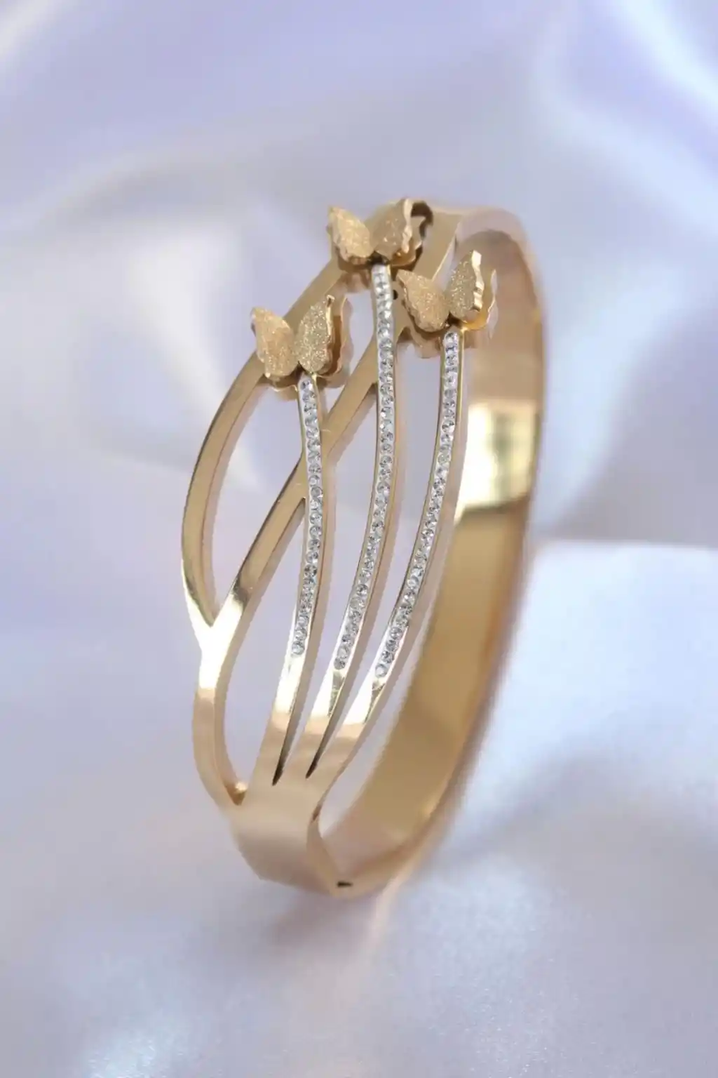 Çelik Gold Renk Kelebek Model Zirkon Taşlı Kadın Kelepçe Aksesuar - Ürün tipi 316L çeliktir kararmaz paslanmaz . - Sağlıklı ve mutlu günlerde kullanmanız dileğiyle…