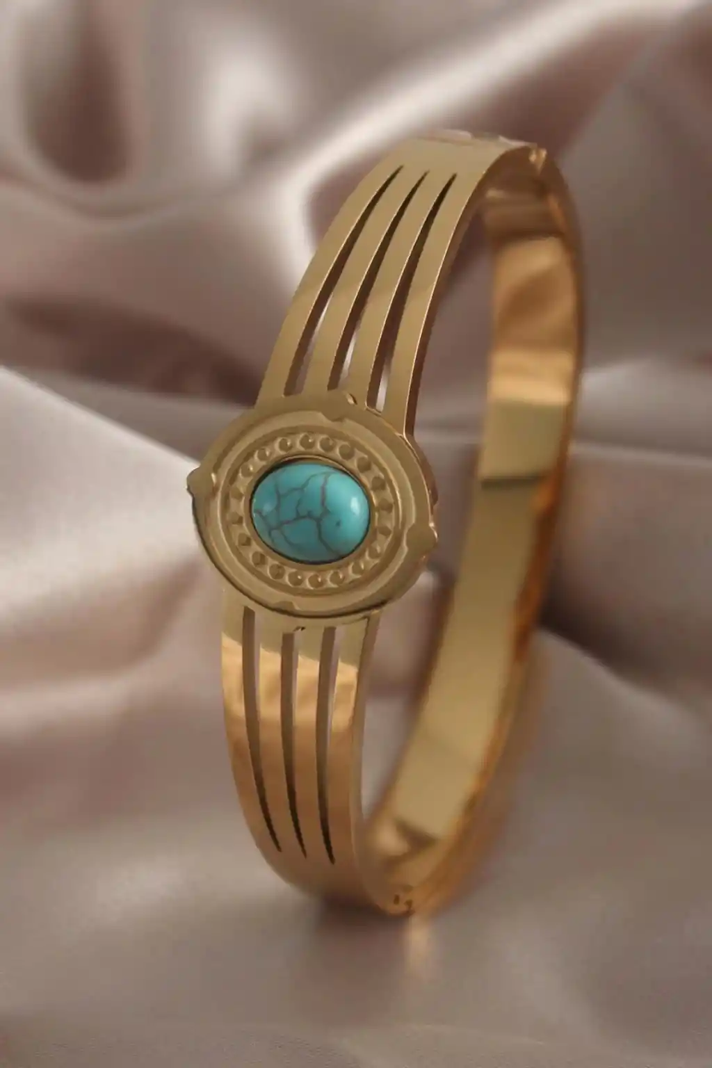 Bu eşsiz Çelik Gold Renk Mavi Taş Figür Kadın Kelepçe, her kadının aksesuar koleksiyonuna zarif ve sofistike bir dokunuş katacaktır. İşte bu göz alıcı kelepçenin öne çıkan özellikleri: