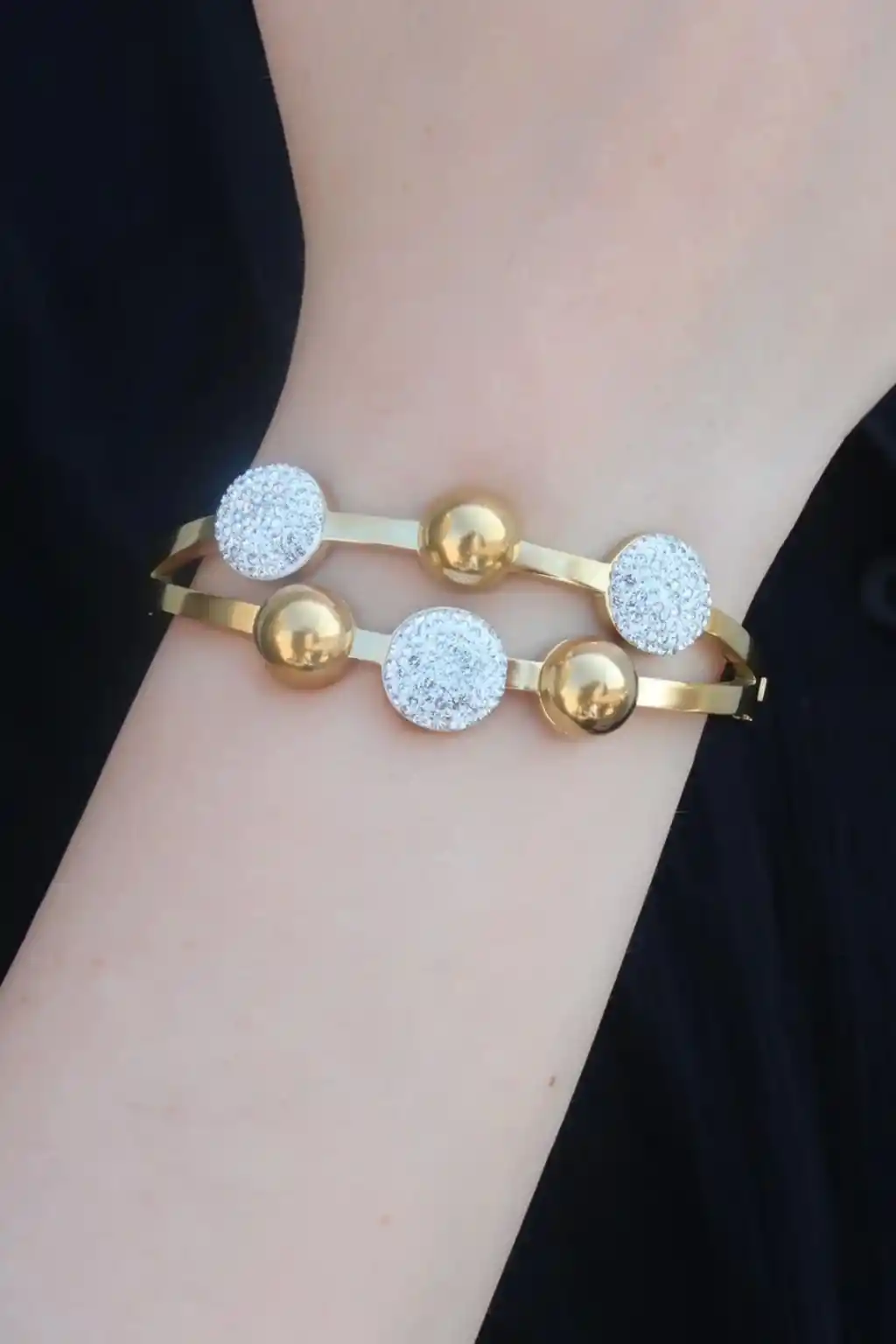 Çelik Gold Renk Zirkon Taşlı Top Model Kadın Kelepçe Aksesuar - Ürün tipi 316L çeliktir kararmaz paslanmaz . - Sağlıklı ve mutlu günlerde kullanmanız dileğiyle…