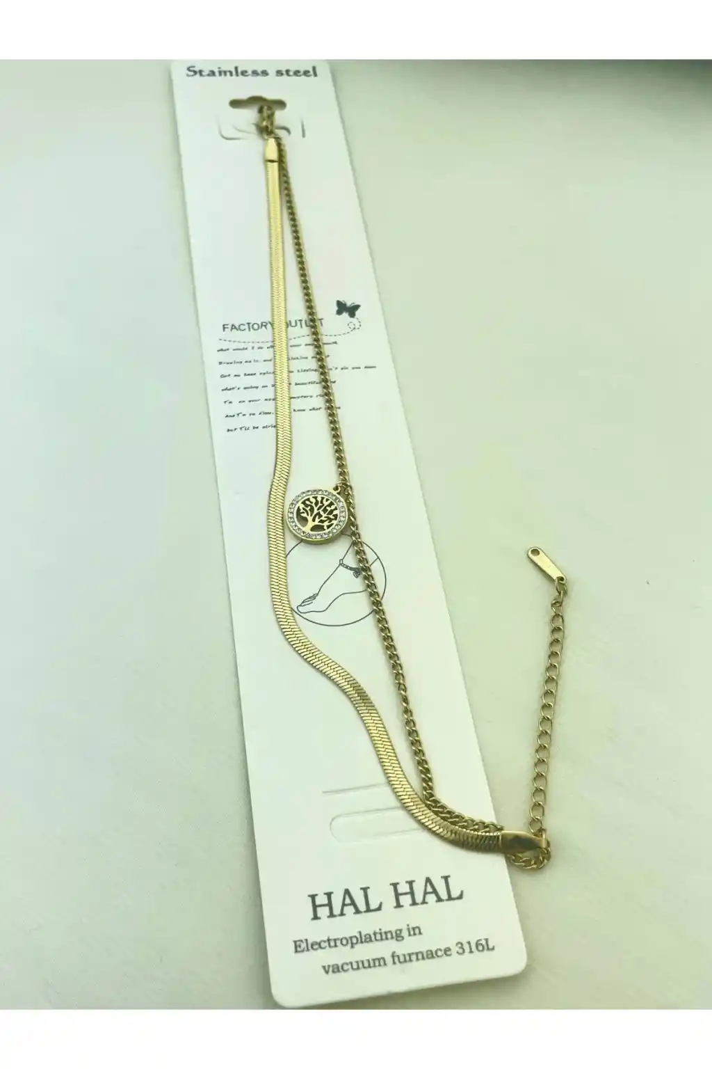 Altın Renk İstiridye Figürlü İkili Çelik Halhal