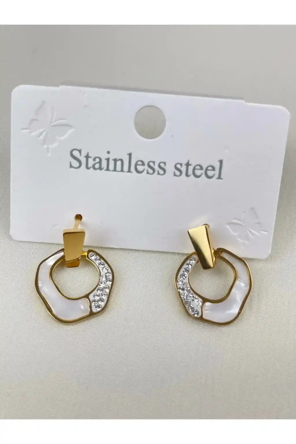 Altın Renk Taşlı Çelik Küpe (Çift)