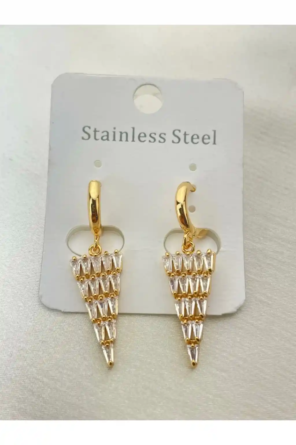 Altın Renk Taş Detaylı Abiye Küpe (Çift)