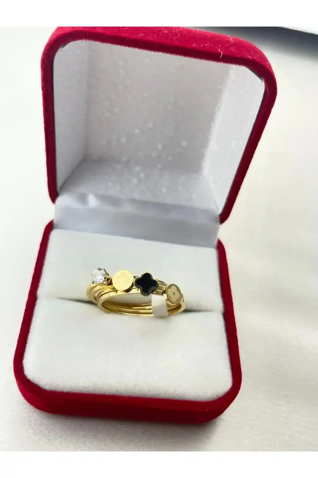 Çelik Gold Renk Zirkon Taşlı Yonca Model Kadın Yüzük
