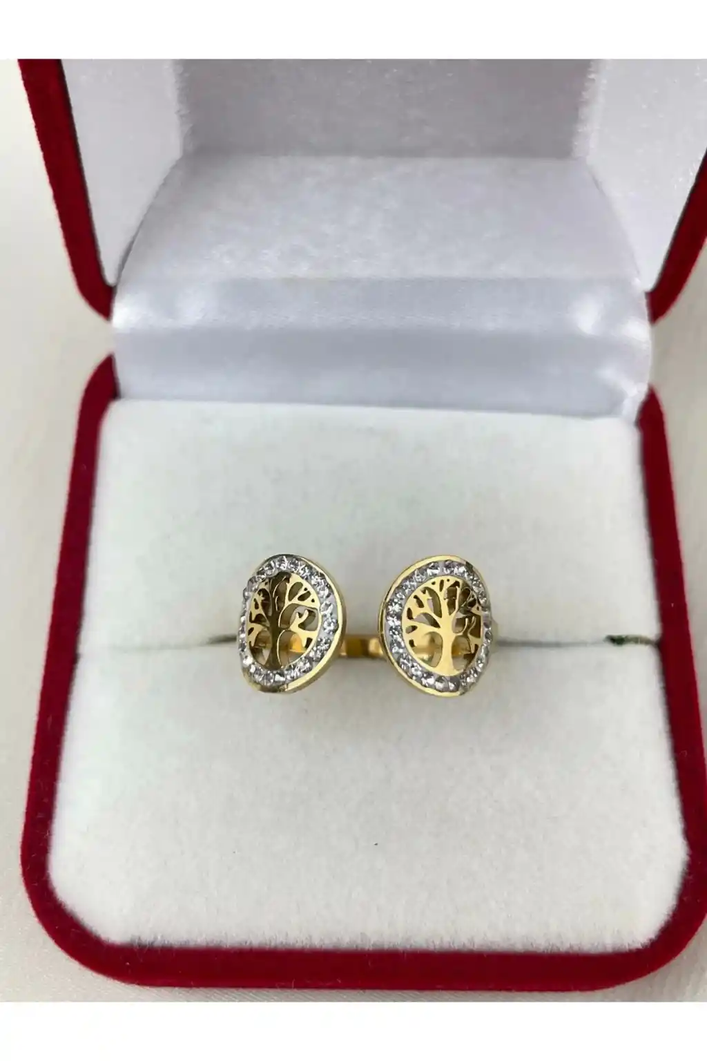 Çelik Gold Renk Zirkon Taşlı Yonca Model Kadın Yüzük