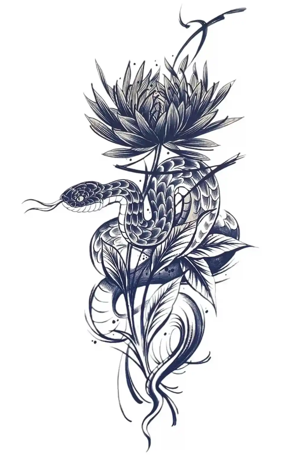Çiçek figürlü yılan detaylı 12 saat sonra kararan geçici dövme, özellikleriyle dikkat çeken bir üründür.