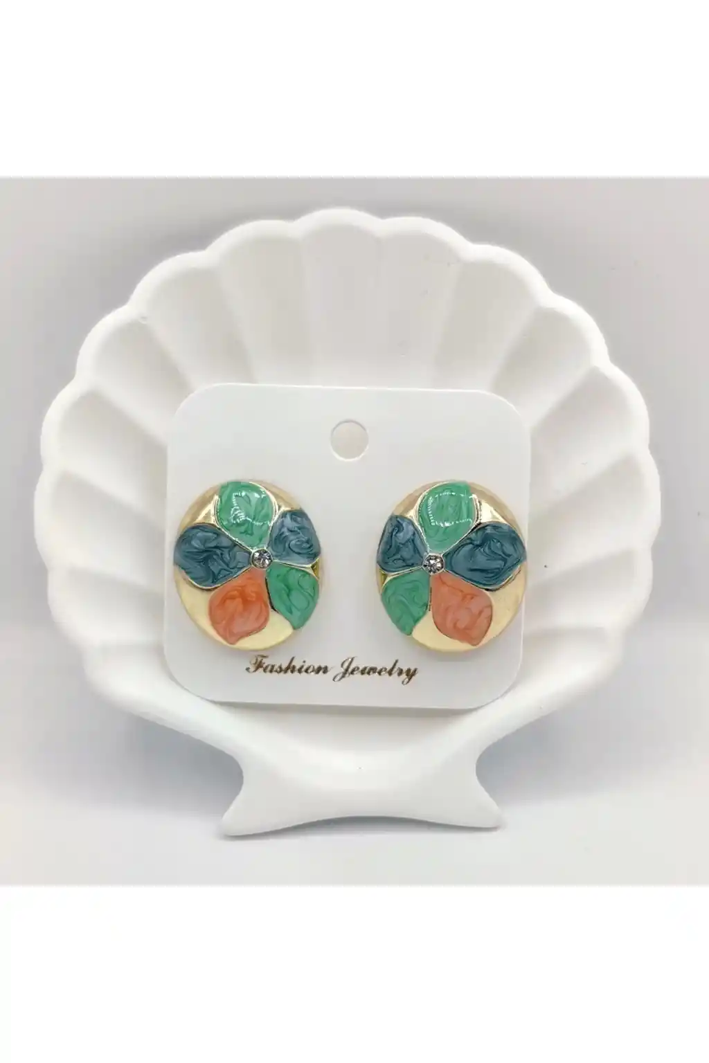 Karışık Renk Taş Detaylı Metal Küpe (Çift)