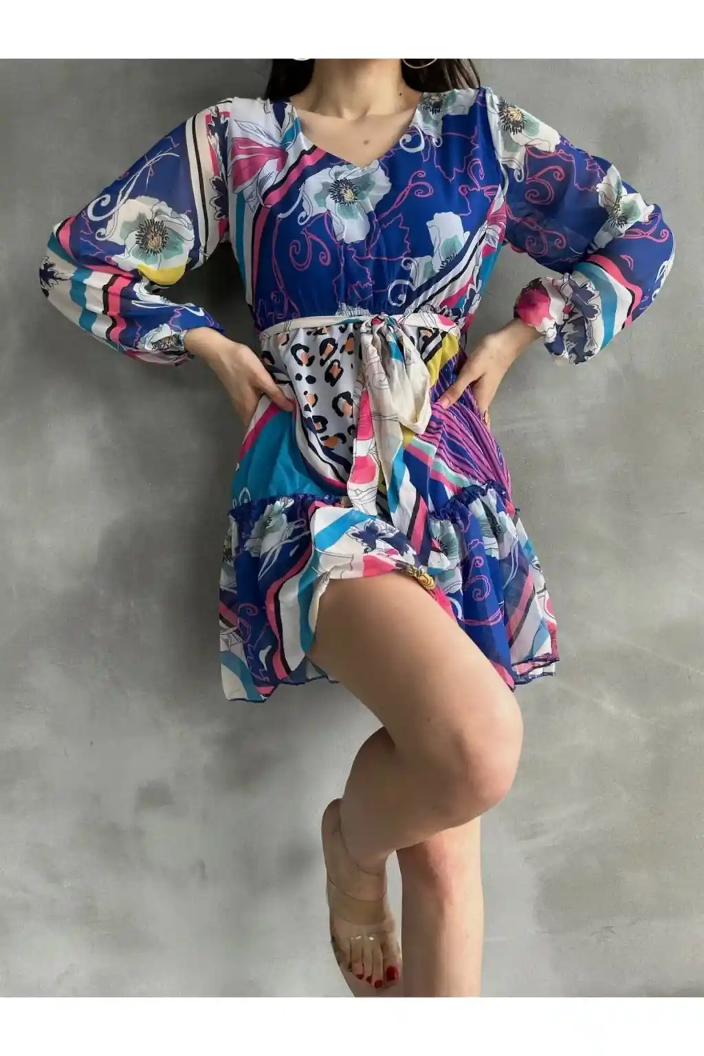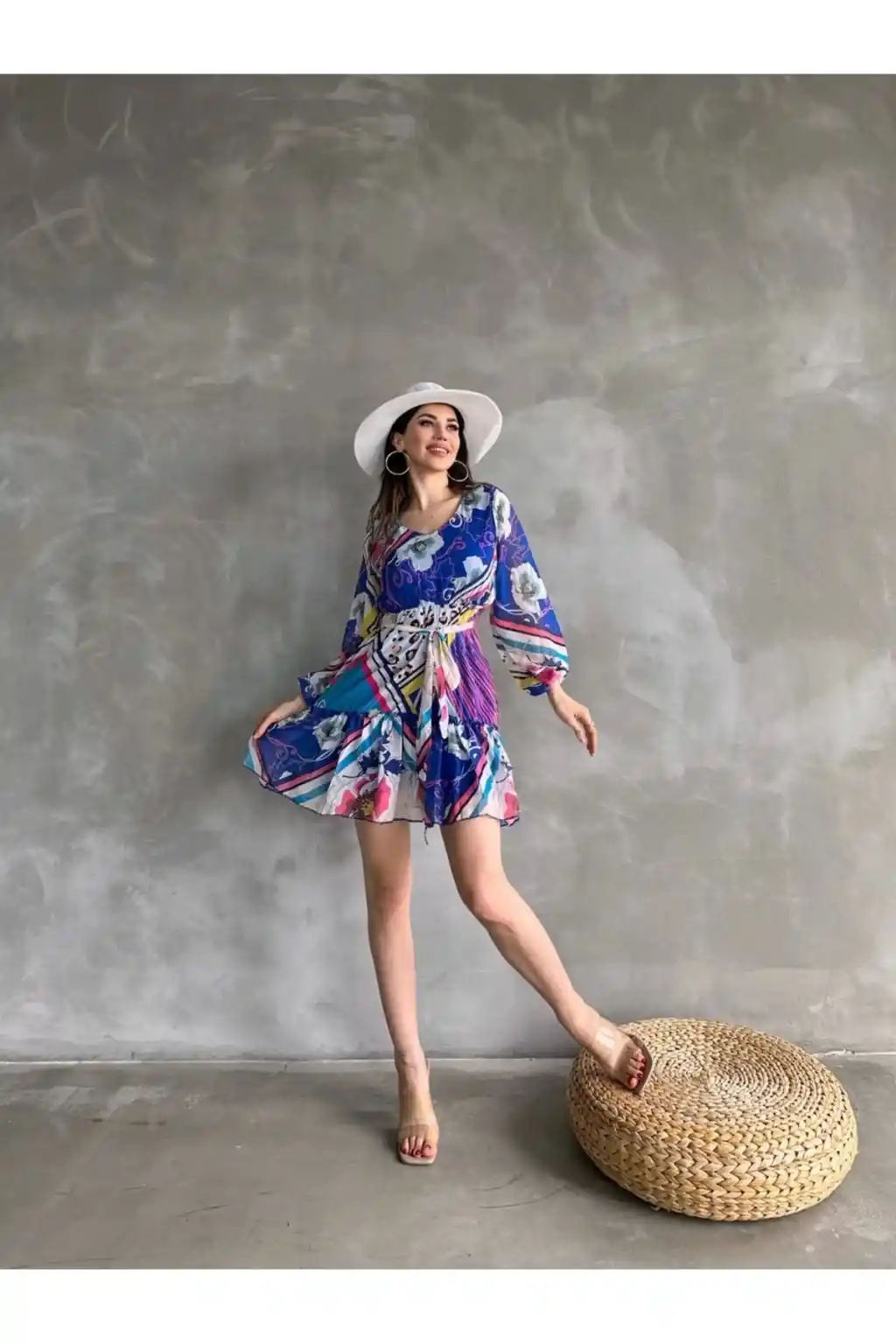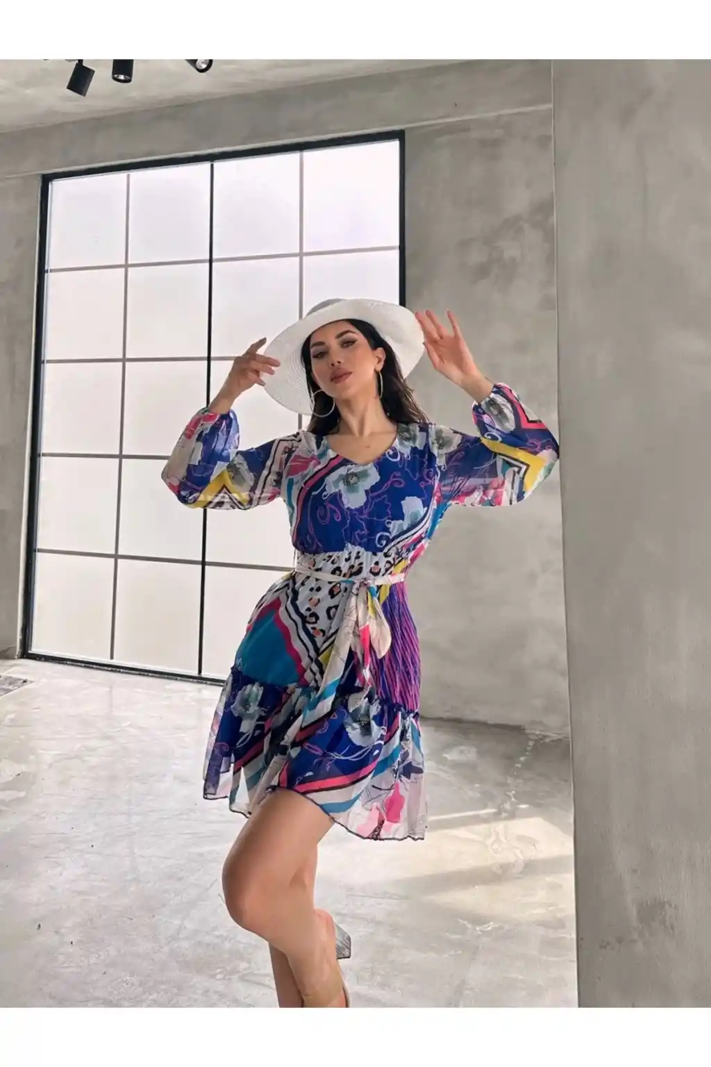 Özel davetlerden günlük şıklığa kadar birçok farklı mekanda rahatlıkla tercih edebileceğiniz Desenli Astarlı Şifon Elbise SAKS RENK, tarzınızı yansıtmak için ideal bir seçimdir.