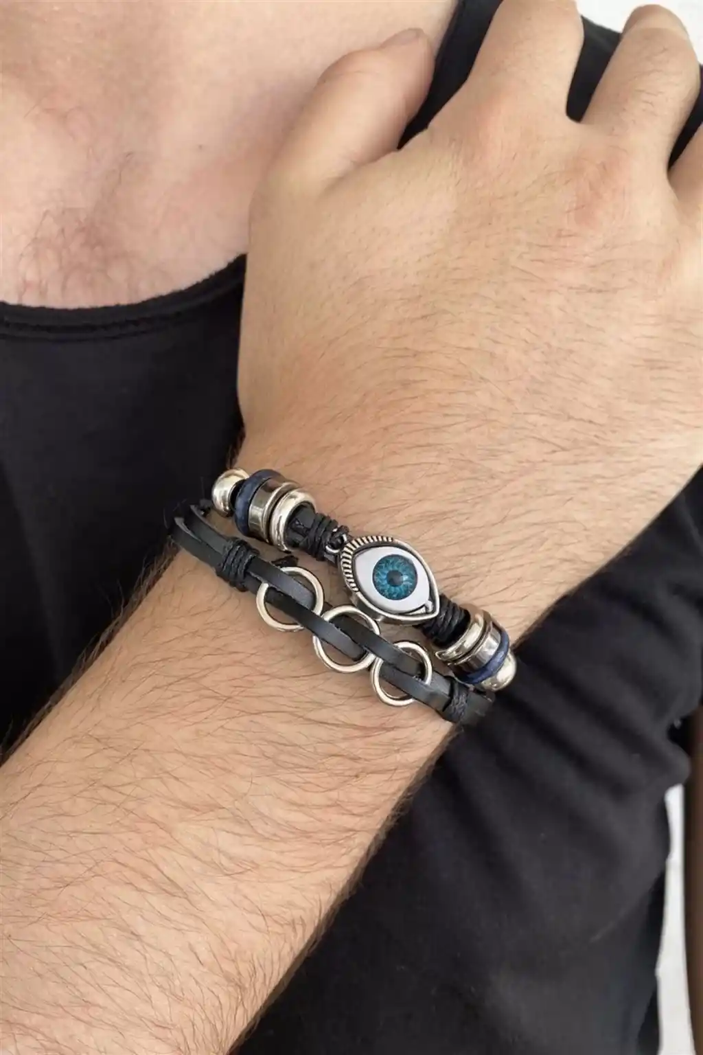 Bu erkek deri bileklik, uzun ömürlü bir kullanım sunan üst düzey deri malzemeden üretilmiştir.