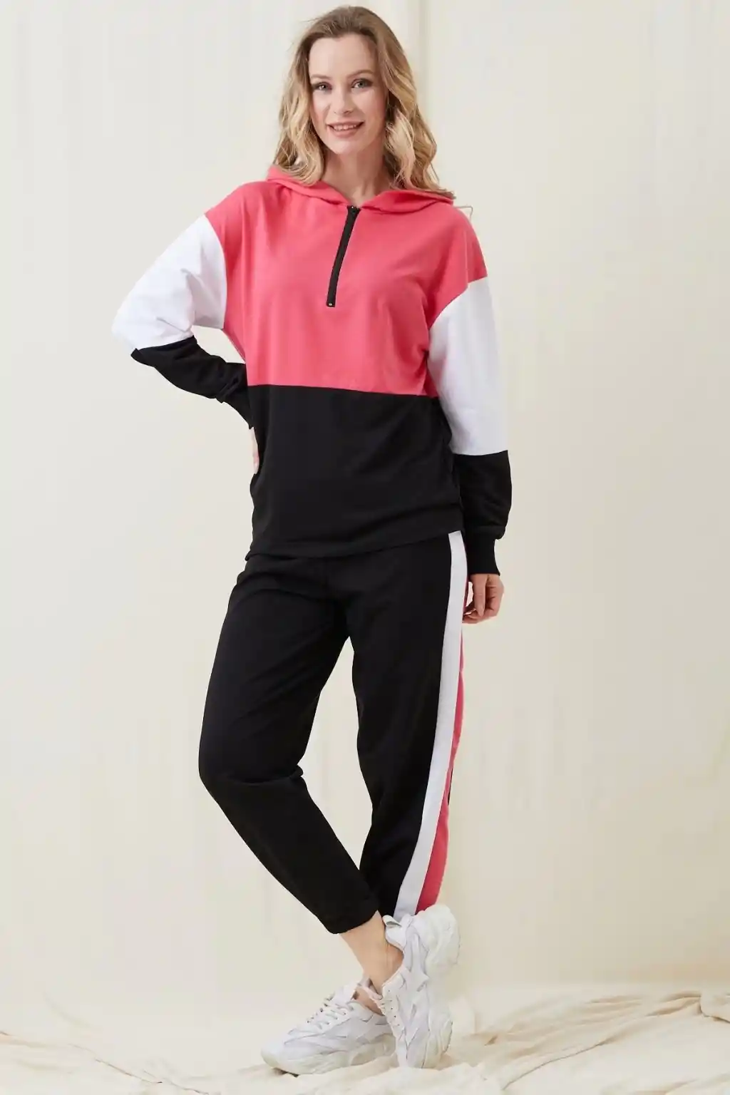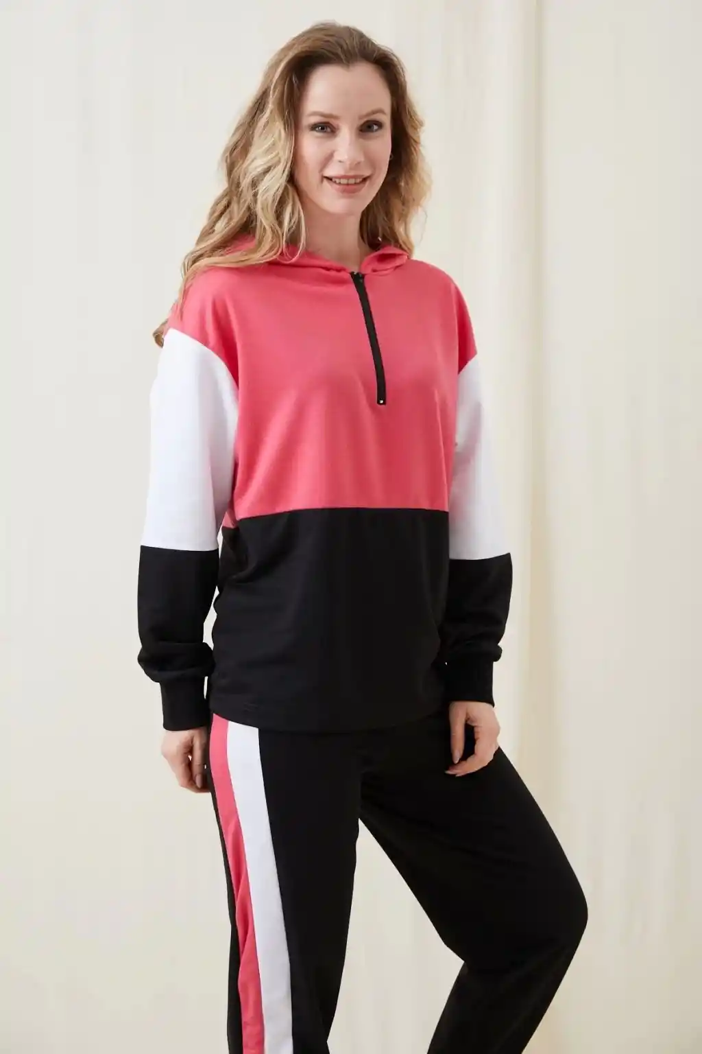 Eşofman takımı, günlük rahatlık ve şıklığı bir arada sunan kadın giyim ürünlerinden biridir.; Spor yaparken ya da günlük hayatta konforu ön planda tutmak isteyenler için mükemmel bir seçimdir.; Kadın giyim kategorisinin dikkat çekenlerinden olan bu ürün, işlevselliği ve tarzı birleştirir.; Kaliteli kumaş: Yüksek kaliteli, nefes alabilir kumaş kullanılarak üretilmiştir, böylece gün boyu rahat hareket etmenizi sağlar.; ; Esnek yapı: Elastik bel ve bilek detayları sayesinde mükemmel uyum sağlar, vücut hatlarına kolayca adapte olur.; ; Modern tasarım: Zarif ve sade tasarımıyla, hem spor aktivitelerinde hem de günlük kullanımda şıklığınızdan ödün vermemenize olanak tanır.; ; Renk seçenekleri: Birden fazla renk alternatifi bulunmaktadır; bu sayede zevkinize uygun tercihi yapabilirsiniz.; ; Kolay bakım: Yıkaması ve bakımı son derece kolaydır, renk ve formunu uzun süre korur.; ; Kadın giyim ürünleriniz arasında farklılık yaratmak ve gün boyu konforu yaşamak istiyorsanız, bu eşofman takımı sizin için ideal bir seçimdir.