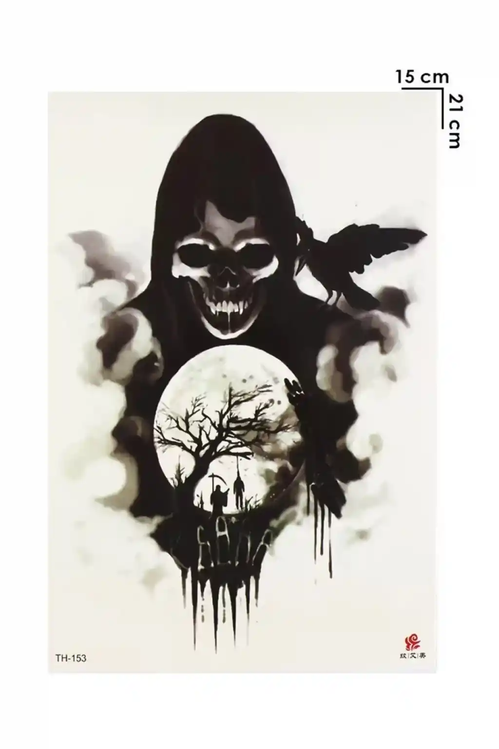 - Geçici dövmeler arasında öne çıkan temalı tasarım, karanlık ve gizemli bir atmosfer yaratır.; - Dövmenin menşei Türkiye'den gelmesiyle, kültürel mirasımızın bir parçasını vücut üzerinde taşıma imkanı sunar.; - Geçici yapısı sayesinde istenildiği zaman çıkarılabilir ve tekrar uygulanabilir; böylece kişisel tarzınızı özgürce ifade edebilirsiniz.; - Özel olarak tasarlanmış bu geçici dövme, hem estetik hem de kişisel anlamda benzersiz bir deneyim sunar.