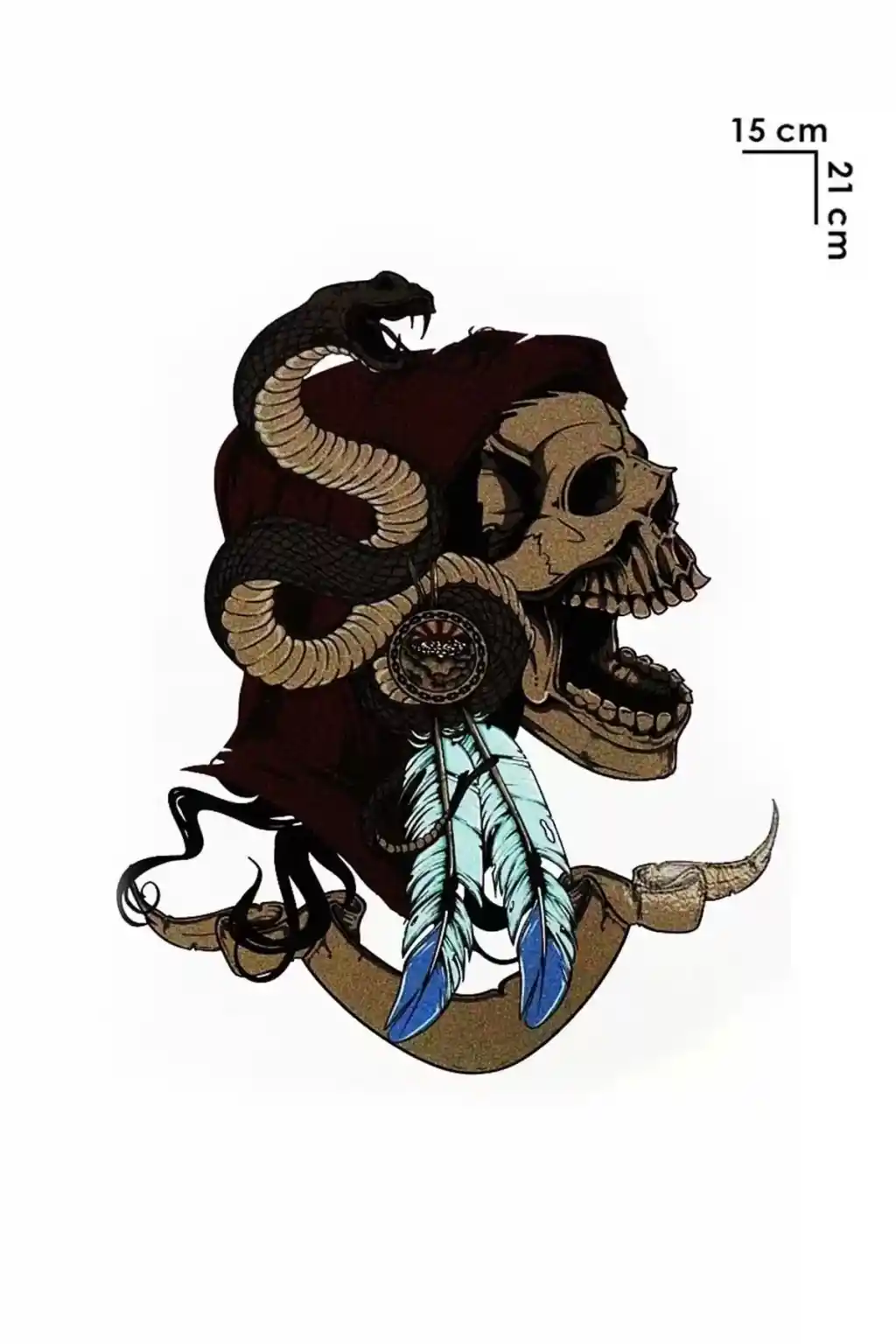 Kurukafa ve yılan motifleri ile cesur ve cool bir görünüm sağlar.