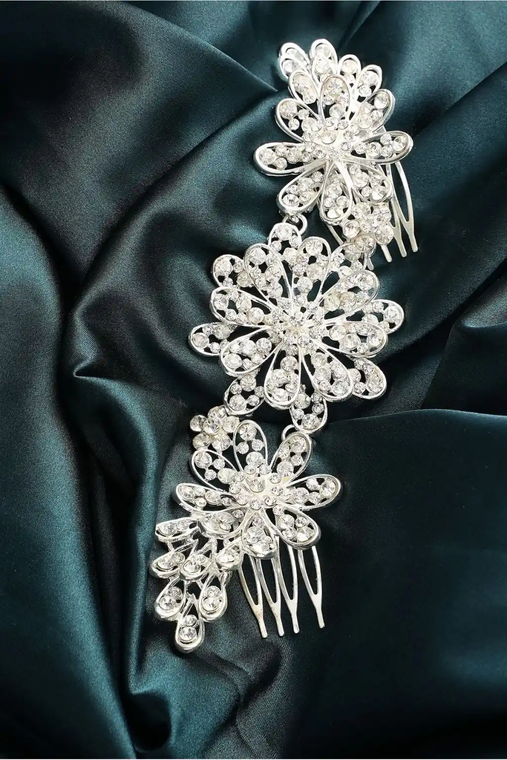 Gelin Saç Aksesuarı Taşlı Çiçek Tasarımlı