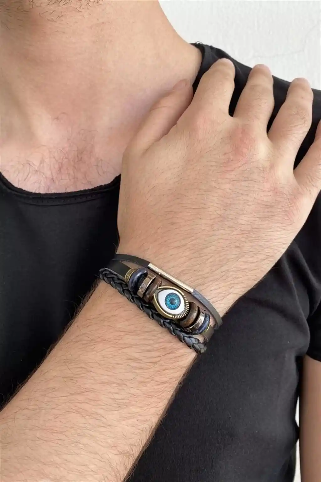 Deri malzeme kullanımı sayesinde dayanıklı ve uzun ömürlü bir aksesuar deneyimi sunar.; Göz figürü detayı ile dikkat çekici ve stil sahibi bir görünüm kazandırır.; Klasik tasarımıyla her türden giyim tarzına kolayca uyum sağlar.; El yapımı olmasıyla her biri benzersizdir ve kişisel zevke göre özelleştirilebilir.; Günlük kullanım için idealdir; rahatlığı ve şıklığı bir arada sunar.;