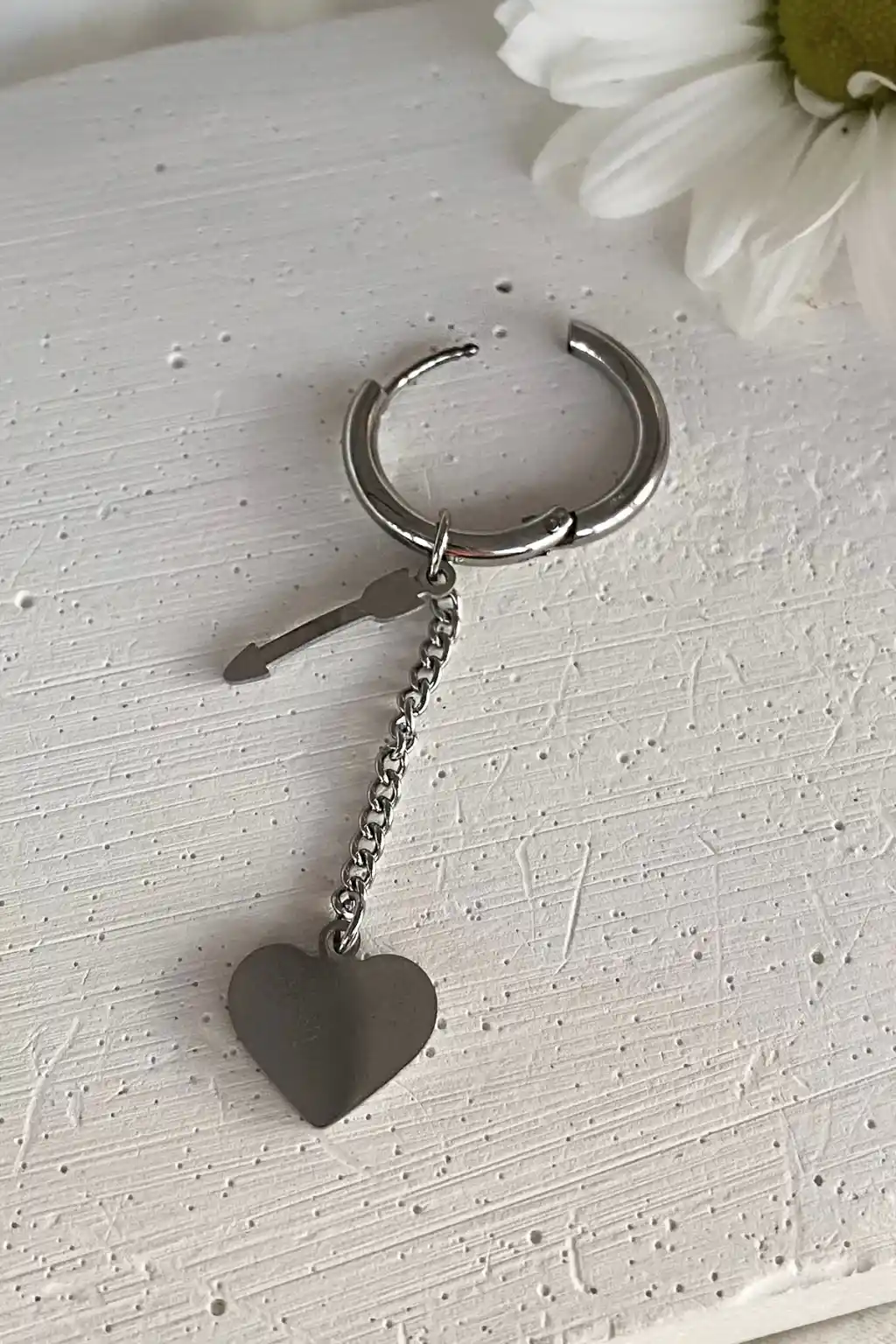 Bu şık ve modern Gümüş Renk Kalp Figürlü Unisex Küpe, tarzınıza zarif bir dokunuş katmak için ideal bir seçenektir.