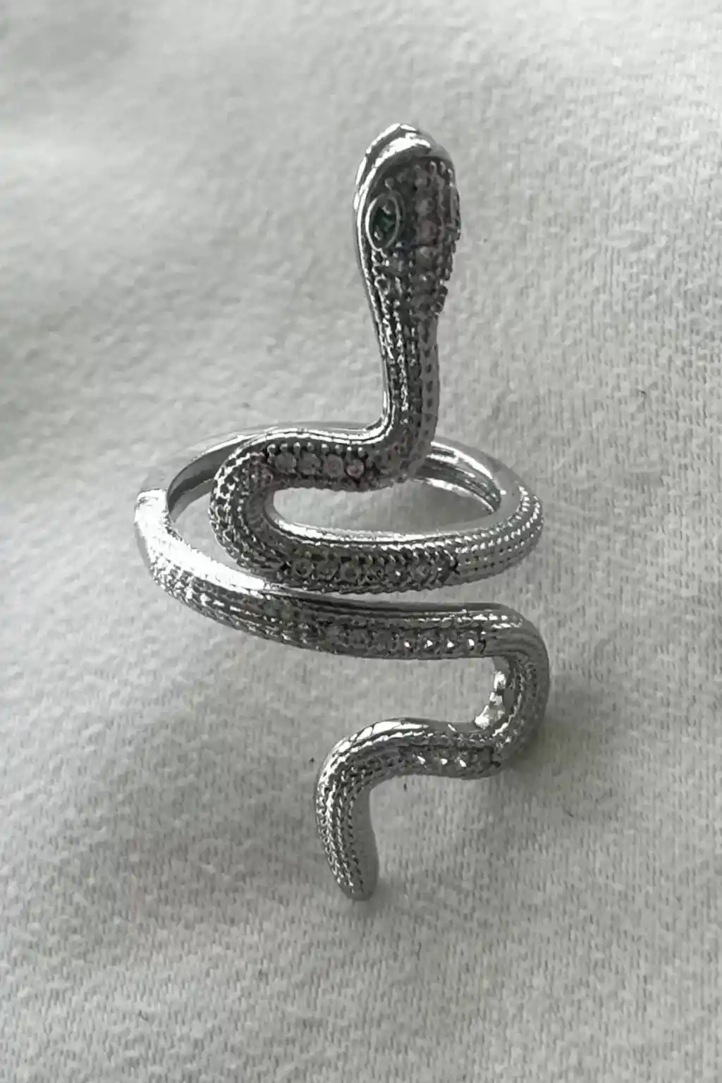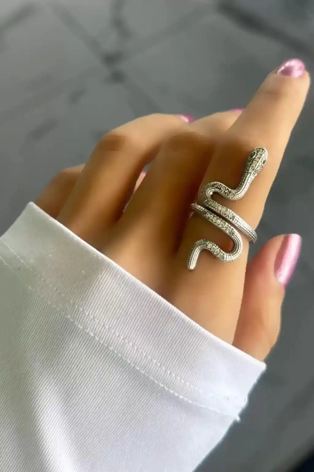 Gümüş Renk Yılan Figürlü Çelik Ayarlanabilir Yüzük